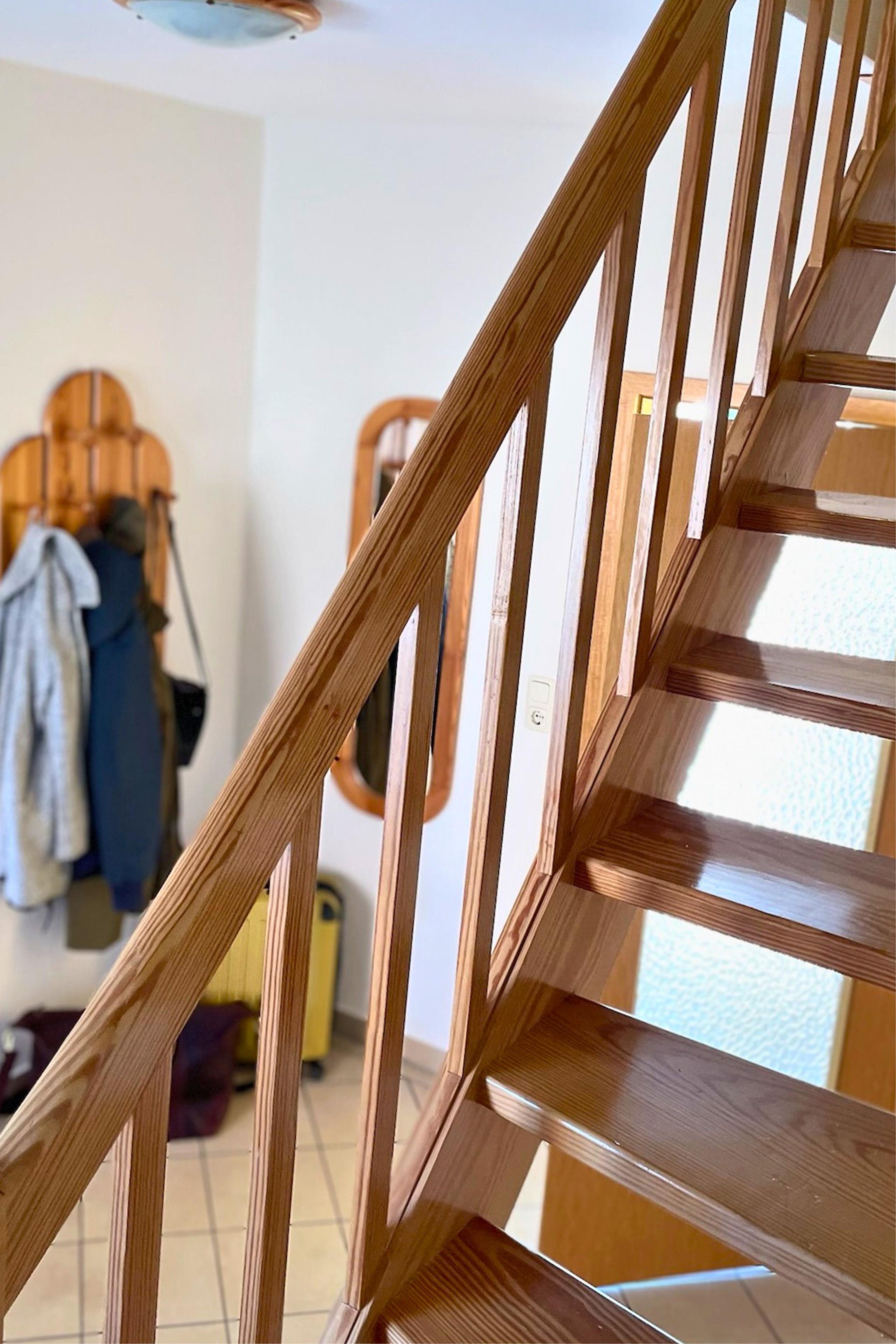 Oben gibt es zwei Schlafzimmer, eines mit großes mit Doppelbett unddas zweite Schlafzimmer mit zwei Einzelbetten eignet sich wunderbar für die Kids oder Freunde.