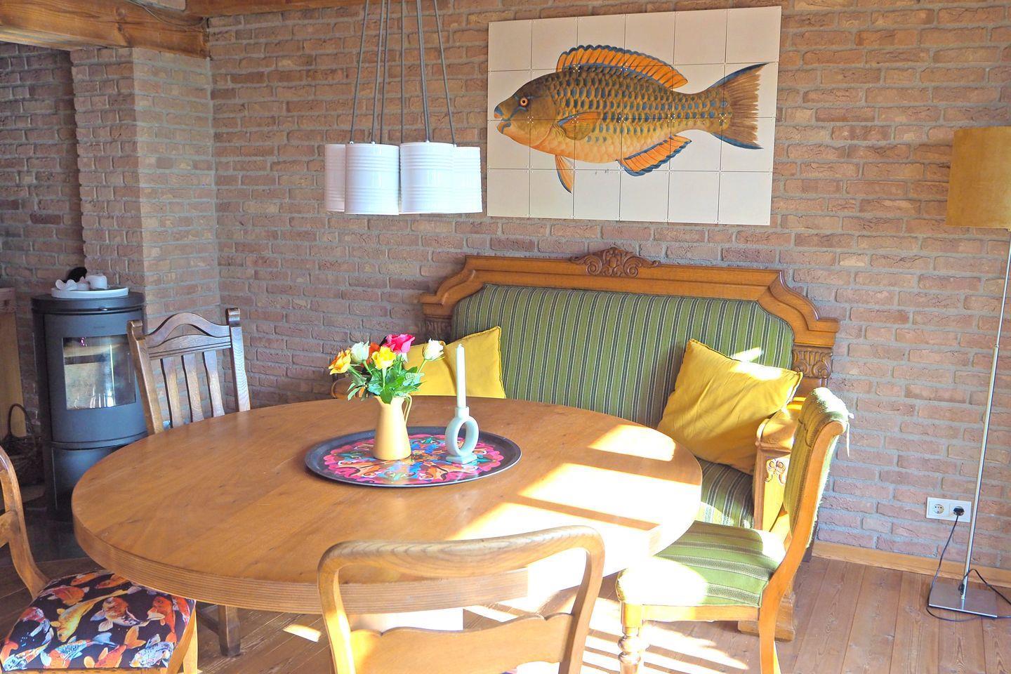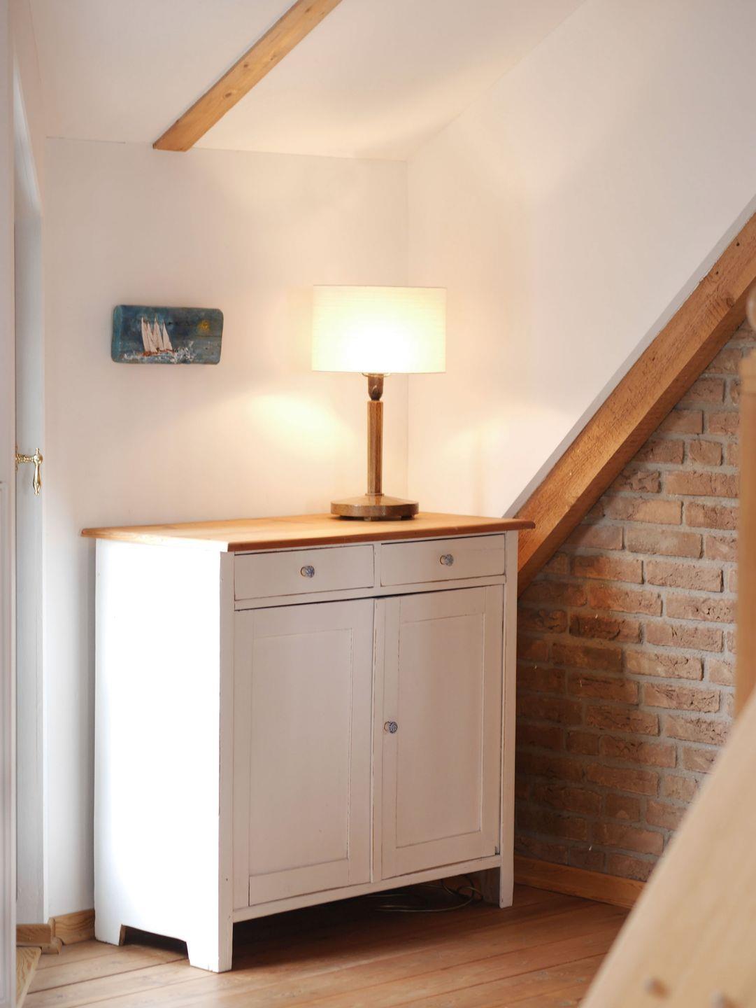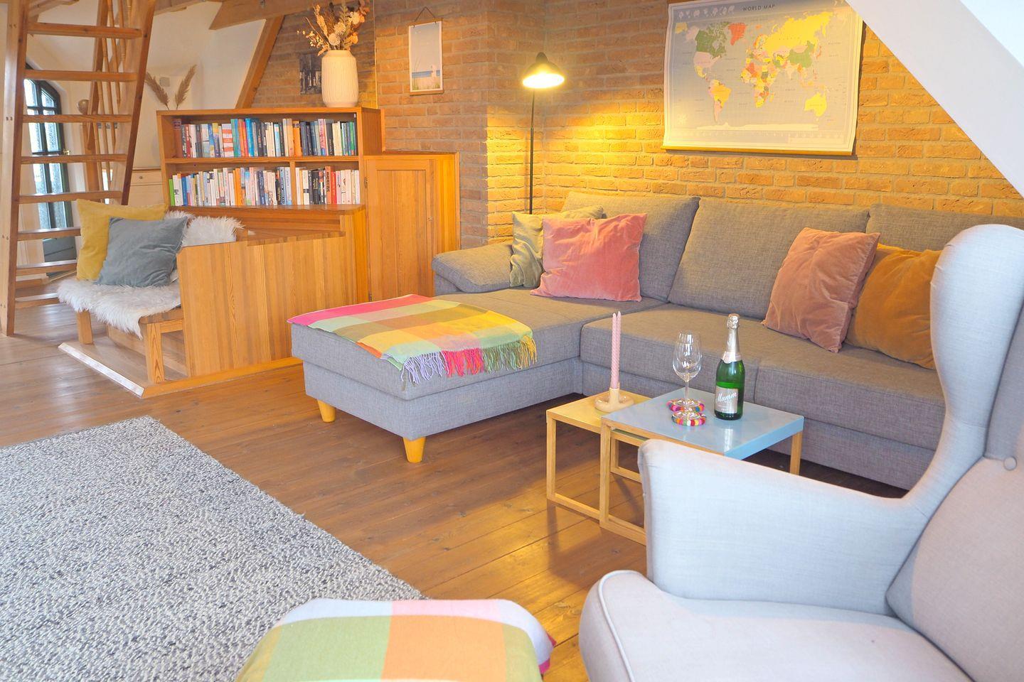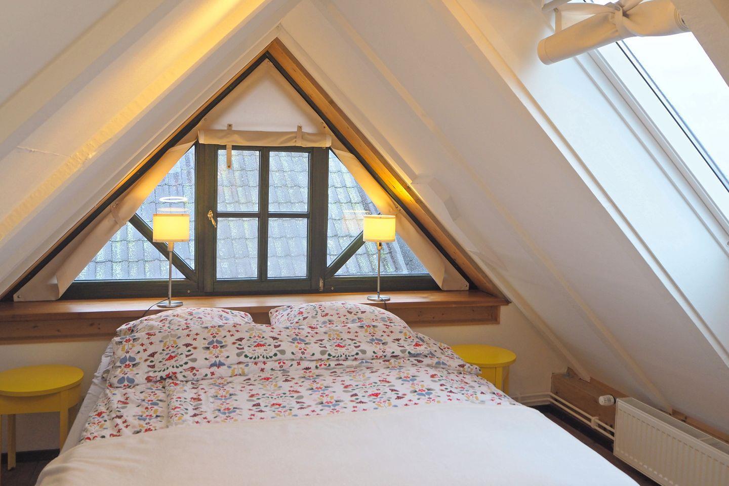 Im ersten Obergeschoss lädt ein großzügiges Wohnzimmer mit Schlafsofa, was eine weitere Schlafmöglichkeit für zwei Personen bietet, zum Verweilen ein. Über eine steilere Treppe gelangen Sie ins gemütliche Dachgeschoss, wo sich das Schlafzimmer unter charmanten Dachschrägen befindet. Links vom Doppelbett ist eine liebevoll gestaltete Schlafkoje untergebracht – ein kleines Abenteuerreich, das sich ideal für Kinder eignet. Bitte beachten Sie, dass das Dachgeschoss offen gestaltet ist und keine Tür zum darunterliegenden Wohnbereich vorhanden ist.