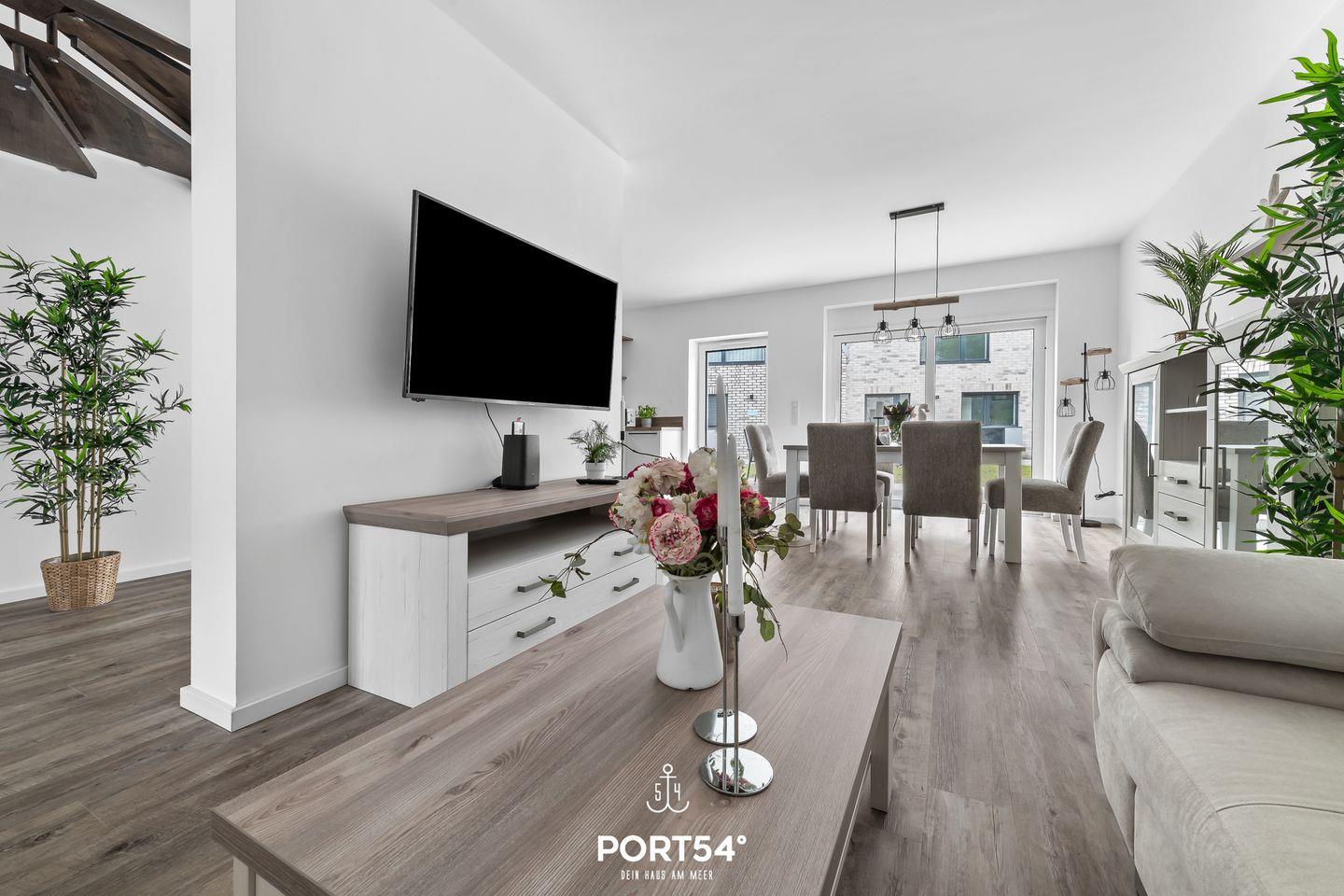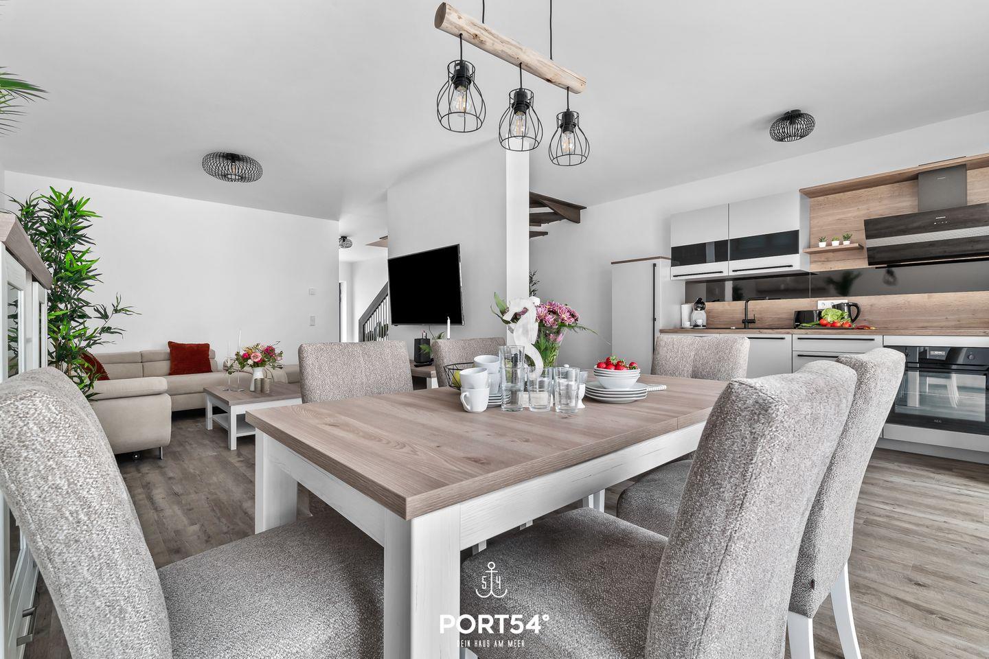 Fühl Dich wie zu Hause im Ferienhaus „Inselloft“! Auf zwei Etagen und über 122 m² Wohnfläche bietet das Haus drei Schlafzimmer, zwei Badezimmer sowie einen geräumigen Wohn- und Essbereich mit angrenzender offener Küche.