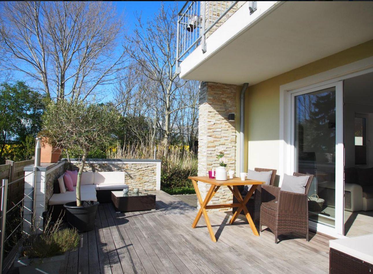 Im Erdgeschoss des Hauses befindet sich die Wohnung Strand. Die 55 qm große Wohnung bietet genügend Platz für maximal 3 Erwachsene. Die Wohnung ist liebevoll, modern eingerichtet Sie bietet einen Wohlfühlfaktor für Sie und Ihr Haustier. Die großzügige, nach süd-west ausgerichtete Terrasse lädt dazu ein, bei traumhaften Sonnenuntergängen ein Glas Wein zu genießen.