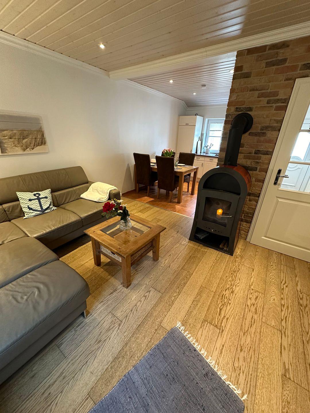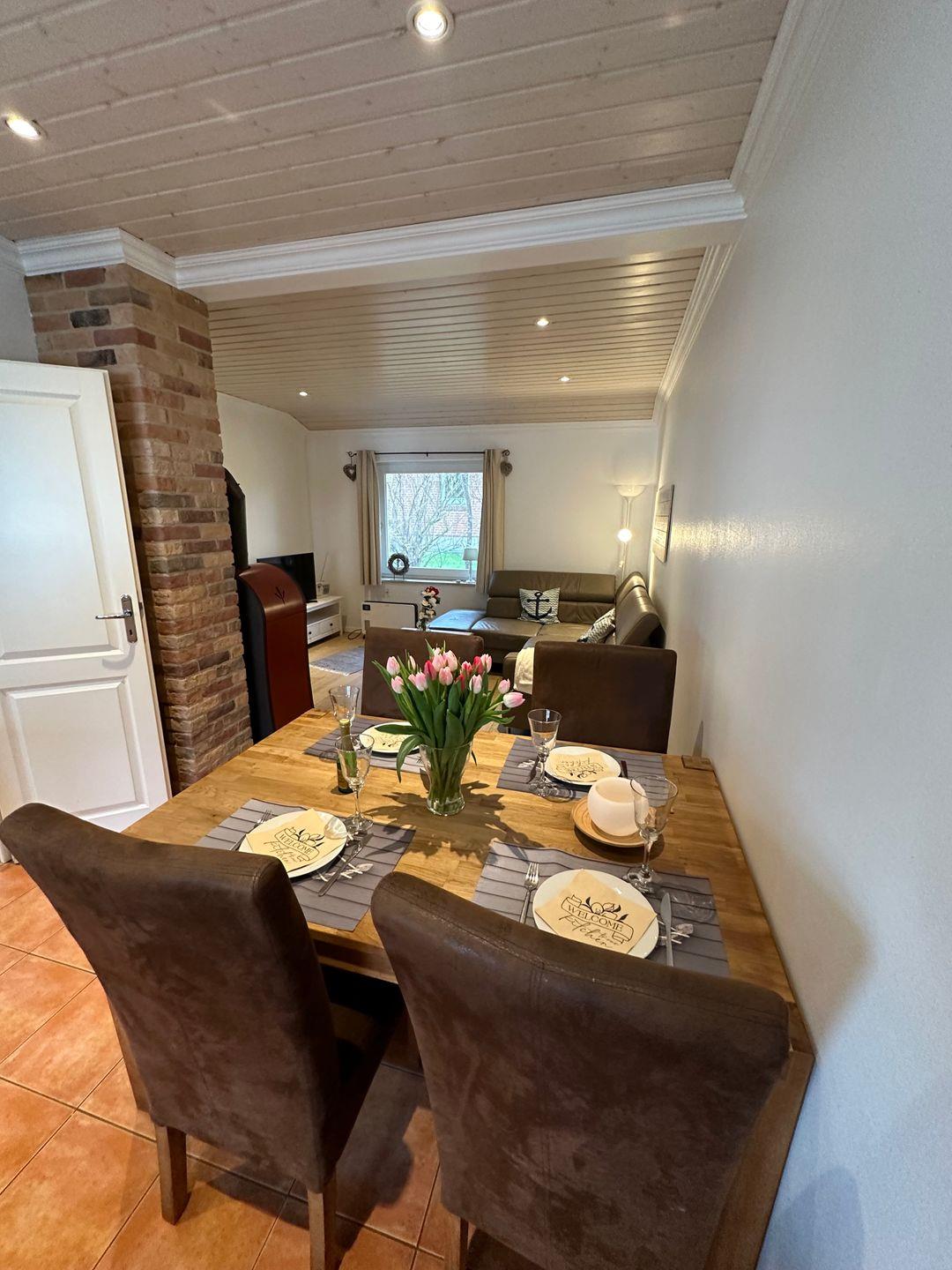 Liebevoll u. gemütlich eingerichtetes Ferienhaus (Doppelhaushälfte) auf großem Gemeinschaftsgrundstück. Ein Haus, in dem man sich sofort wohl fühlt. Die ruhige u. strandnahe Lage lädt ein, das Auto stehen zu lassen.