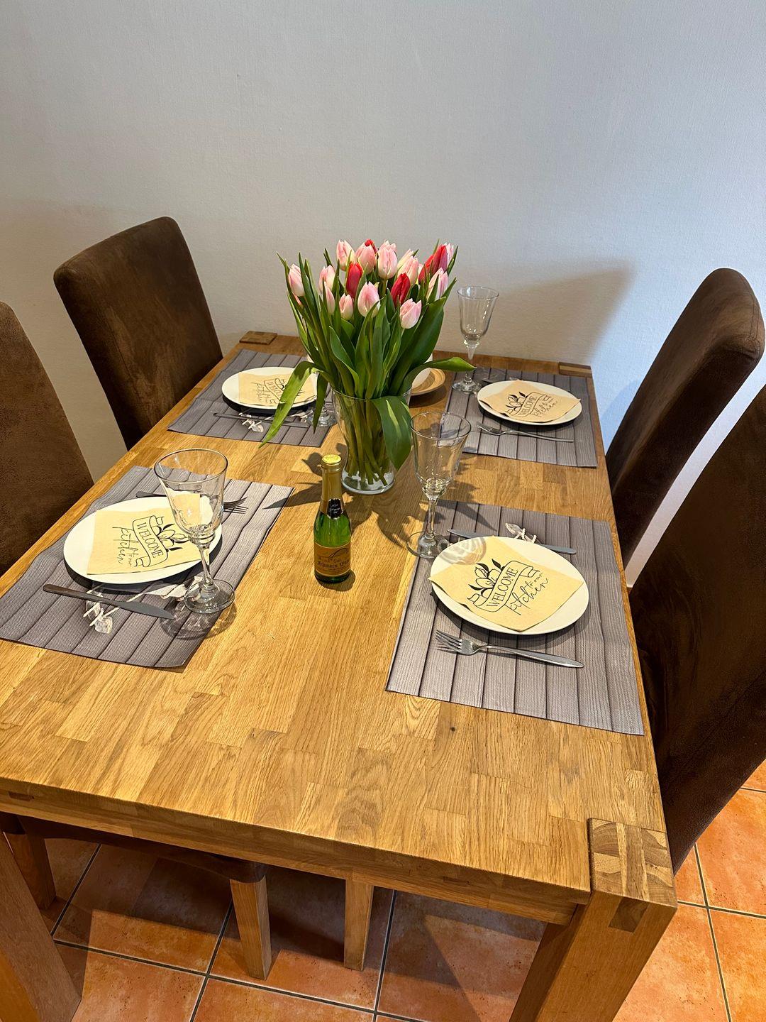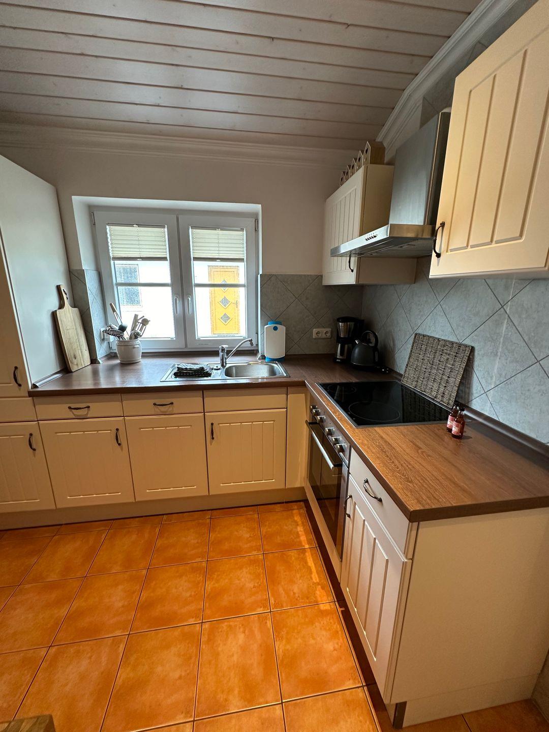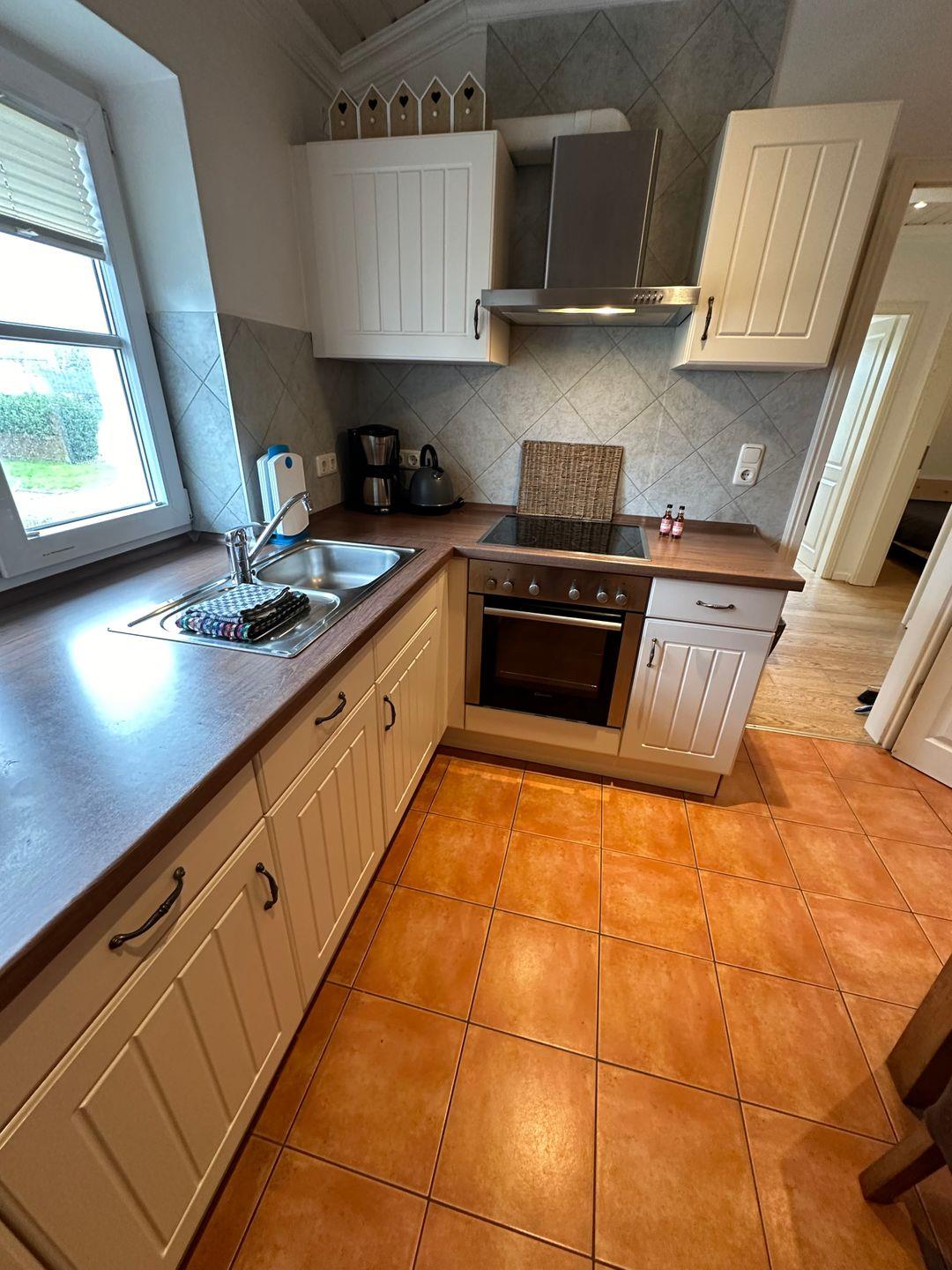 Die Wohnküche bietet neben einem gemütlichem Essbereich einen Herd/ Backofen, Geschirrspülmaschine, Filter Kaffeemaschine, elektrischer Wasserkocher, Toaster etc.