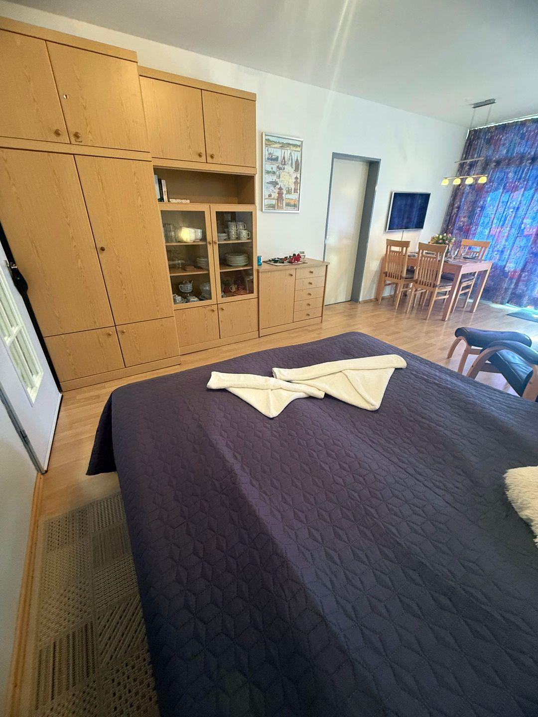 Doppelbett (160x200) mit LED-Leselampen, Flat Screen-TV, Schlafsofa, Esstisch Kleiderschrank, Sideboard, Spiele, Bücher