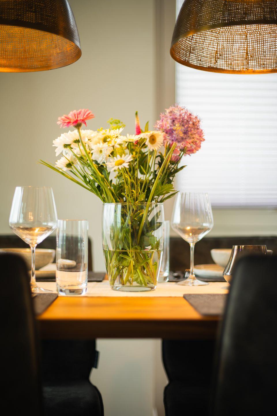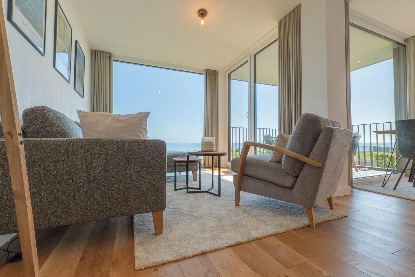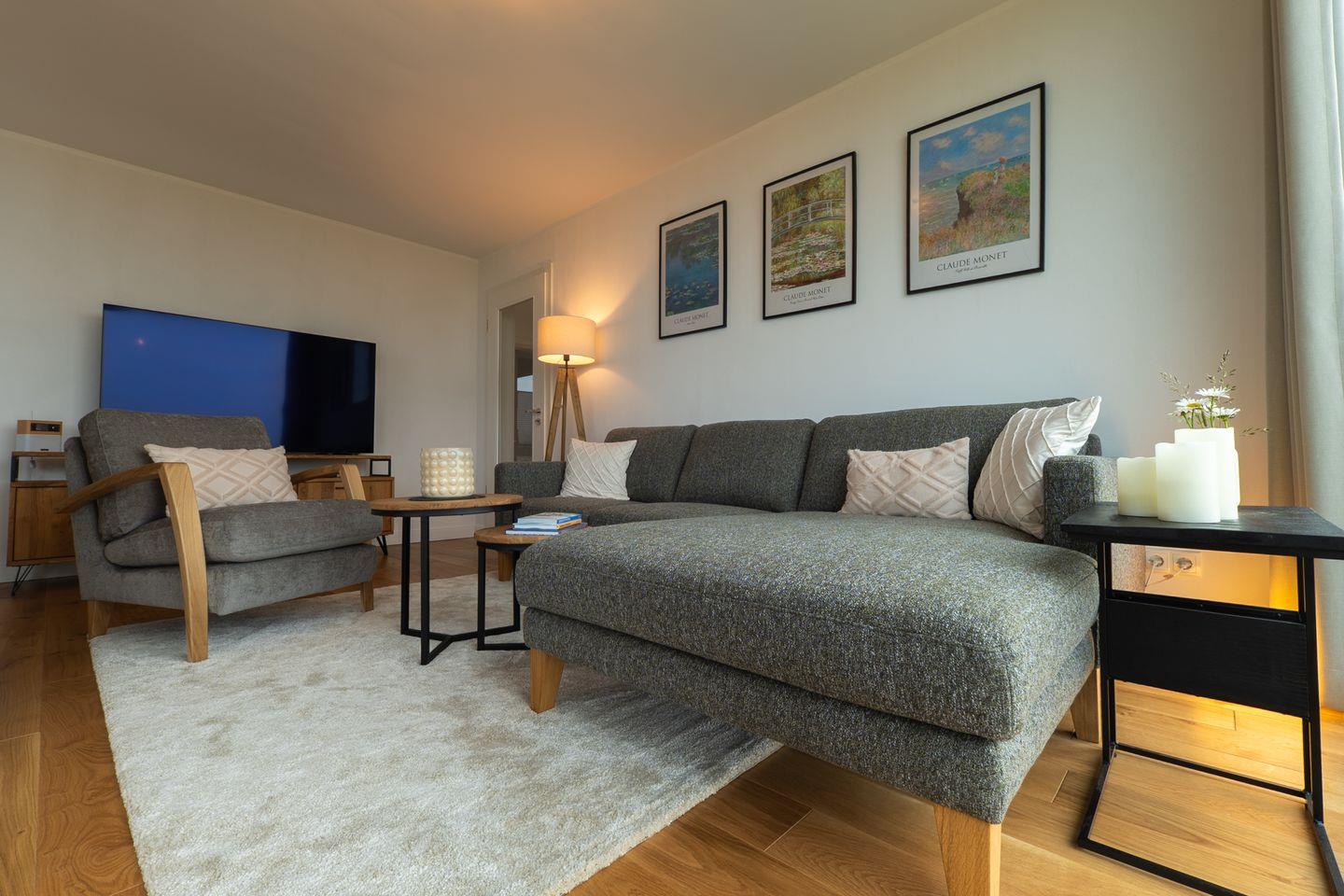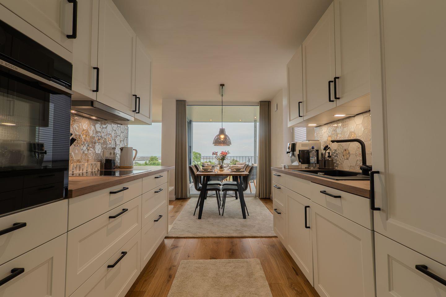 Im lichtdurchfluteten Wohnbereich mit bodentiefen Fenstern genießt du einen uneingeschränkten Blick auf die Ostsee. Hochwertige Möbel, dezente Farben und stilvolle Details schaffen eine gemütliche Atmosphäre. Die offene Küche ist voll ausgestattet – mit Spülmaschine, Mikrowelle, Backofen, Senseo Kaffeemaschine und einem Kaffeevollautomaten für genussvolle Urlaubsmomente.