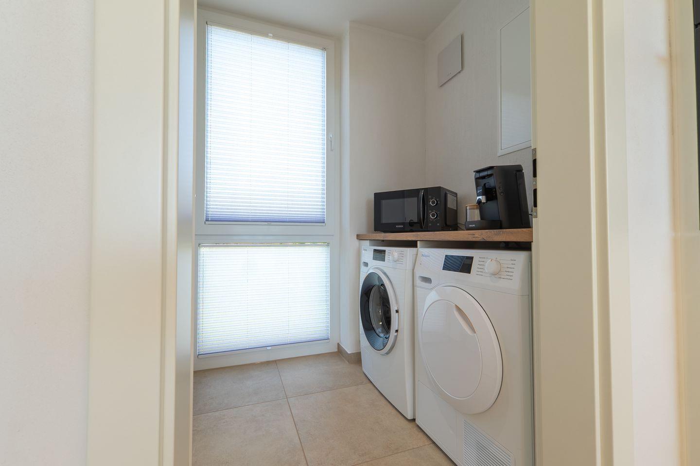 Zur Ausstattung gehören Waschmaschine, Trockner, ein Fahrradraum mit Lademöglichkeit sowie ein eigener Parkplatz direkt an der Unterkunft. Der kontaktlose Check-in erfolgt bequem per Schlüsseltresor – für maximale Flexibilität bei der Anreise.