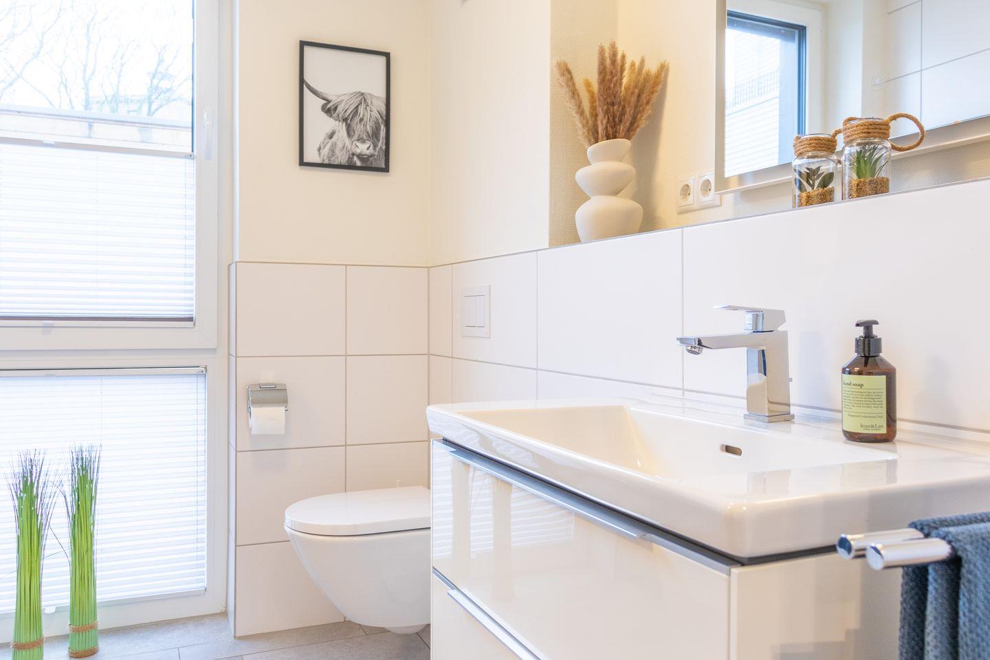 Dein persönlicher Rückzugsort: Die private Sauna sorgt für wohlige Entspannung – die bodengleiche Dusche, stilvolle Details und moderne Ausstattung schaffen ein rundum gelungenes Wellnesserlebnis. Besonders an kühleren Tagen wird das Bad zur Oase der Ruhe.