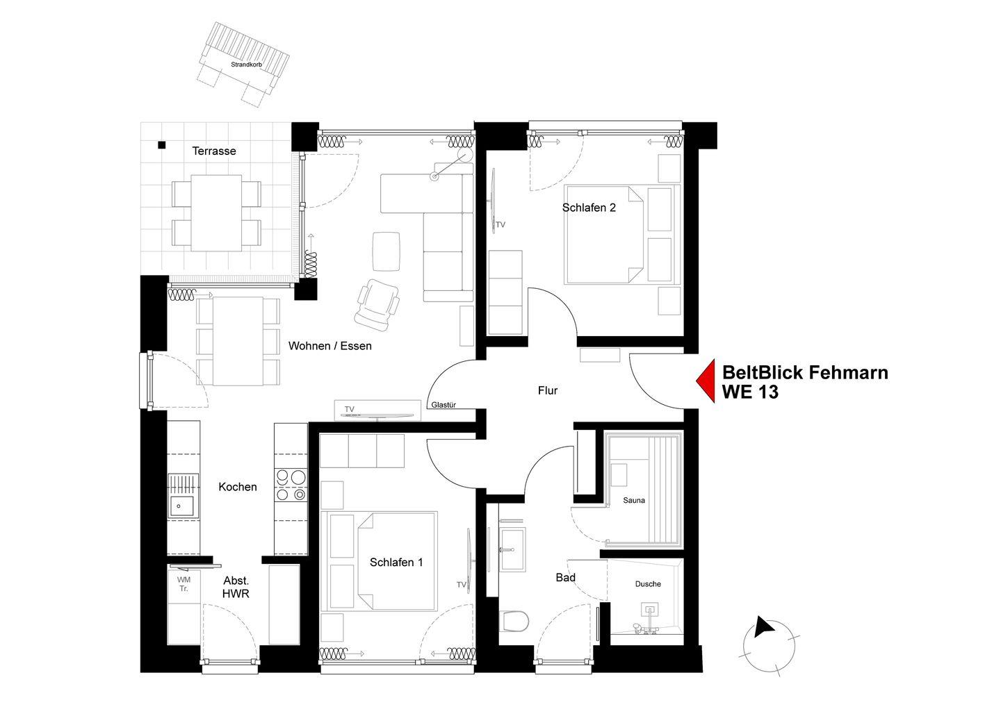 Waschtrockner, kostenloses WLAN, Elektrogrill, Terrassenmöbel und ein Strandkorb stehen bereit. Der Fahrradraum ist abschließbar und mit Lademöglichkeit ausgestattet. Die Anreise erfolgt bequem über Schlüsseltresor, ein Parkplatz befindet sich direkt an der Unterkunft.