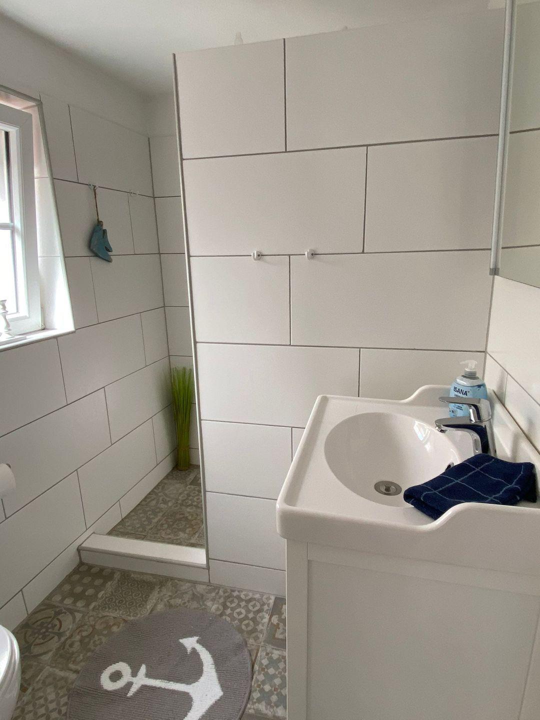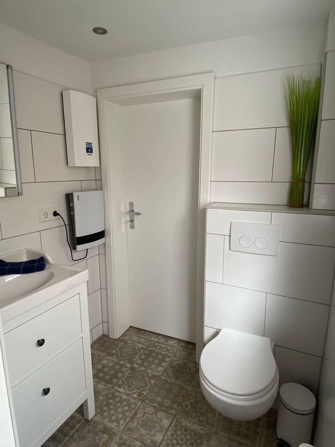 Außerdem befindet sich im EG ein Badezimmer mit Dusche, WC und Waschtisch.