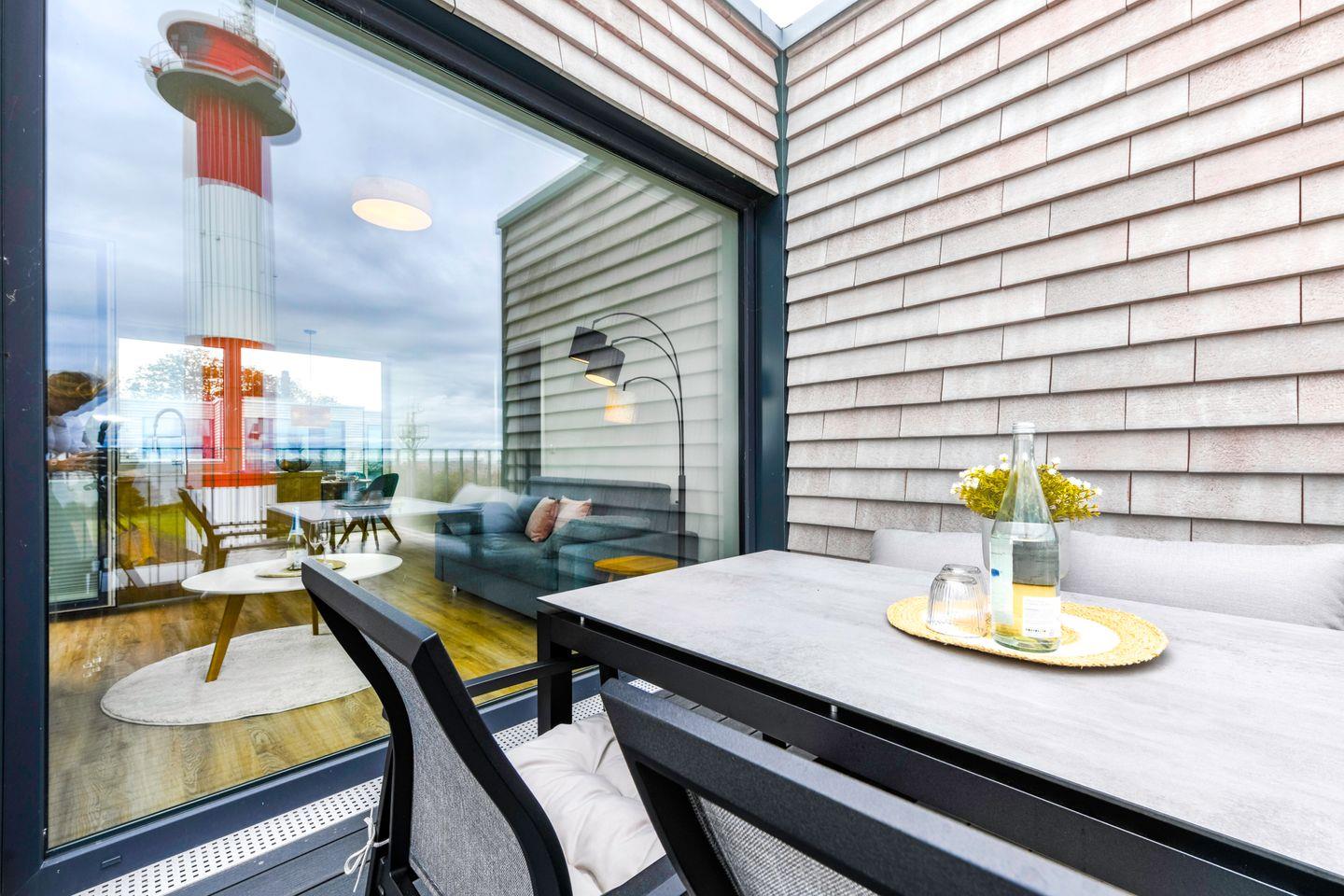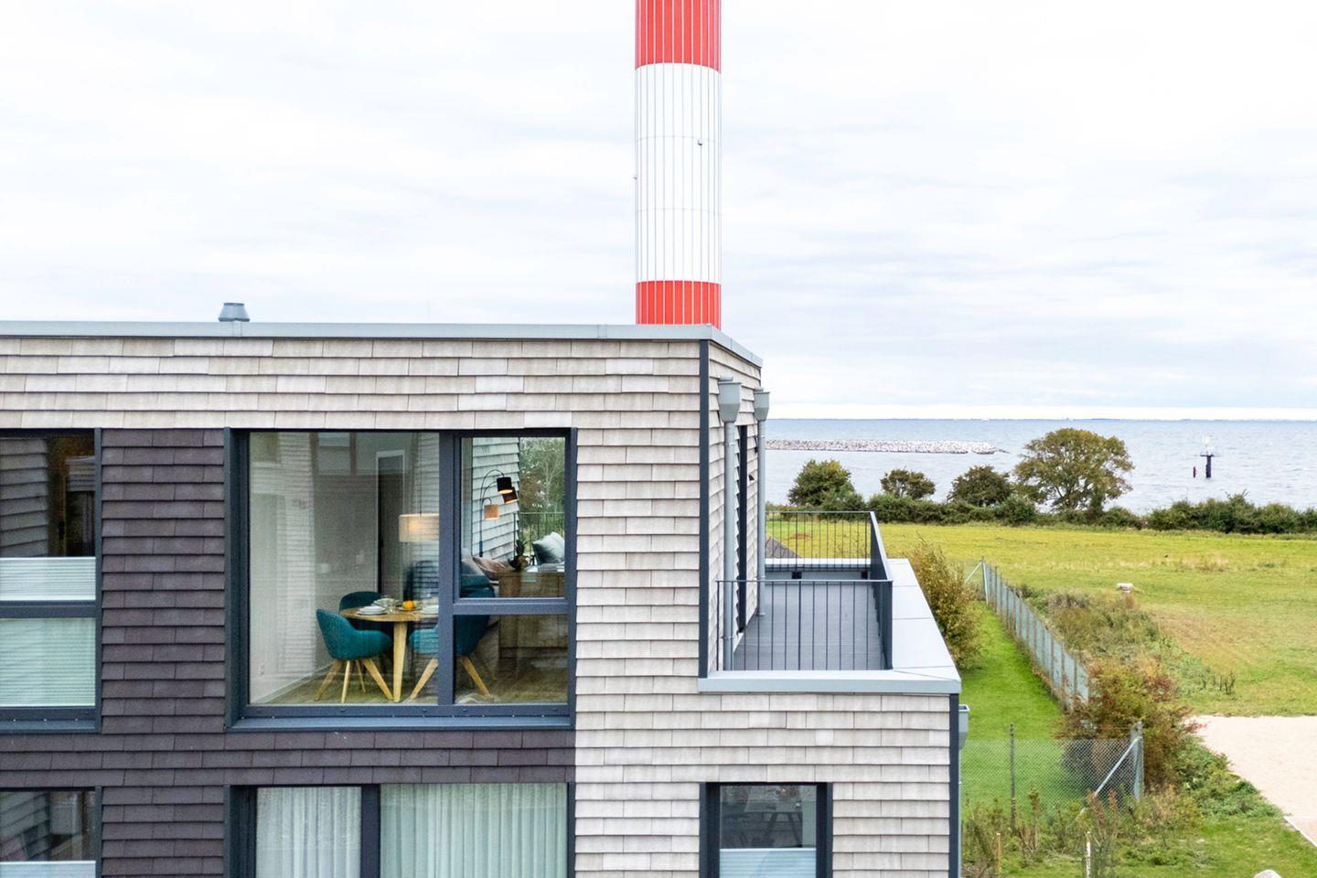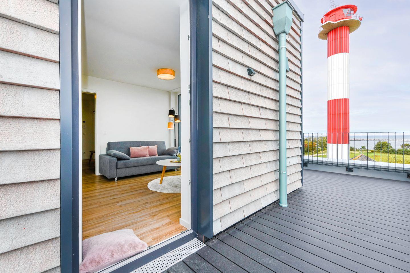 Die Wohnung befindet sich im obersten Geschoss mit großer Terrasse und Blick auf den Leuchtturm Marienleuchte auf Fehmarn und Ostseeblick- nur 100m zum Wasser. Ruhige Lage zwischen den Leuchttürmen, mit Meerblick und kurzer Distanz zu Burg und Burgstaaken.