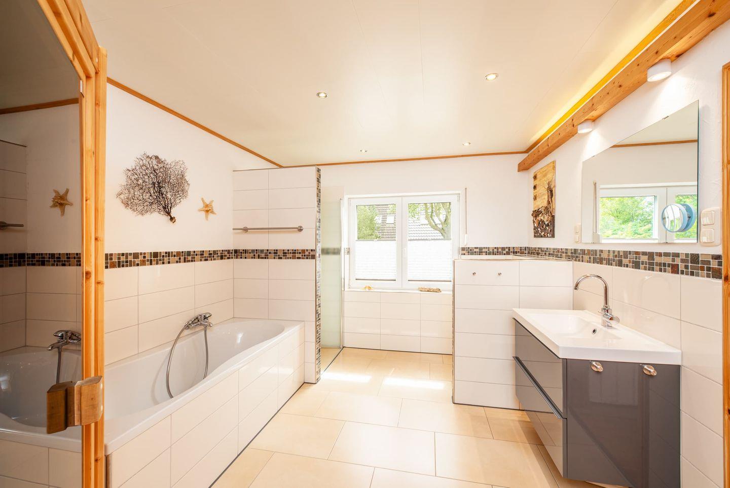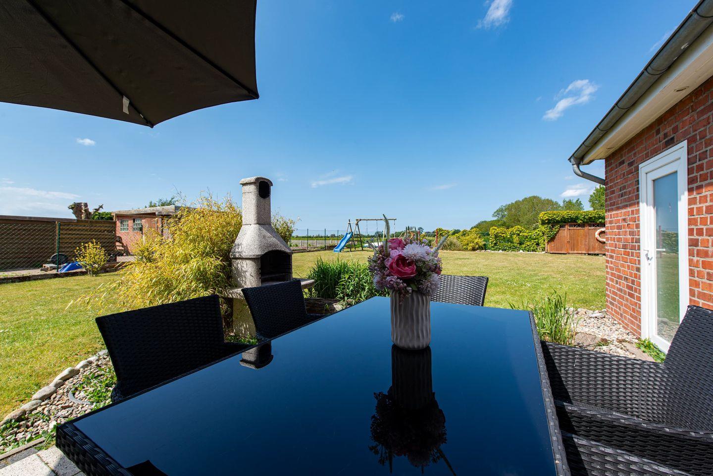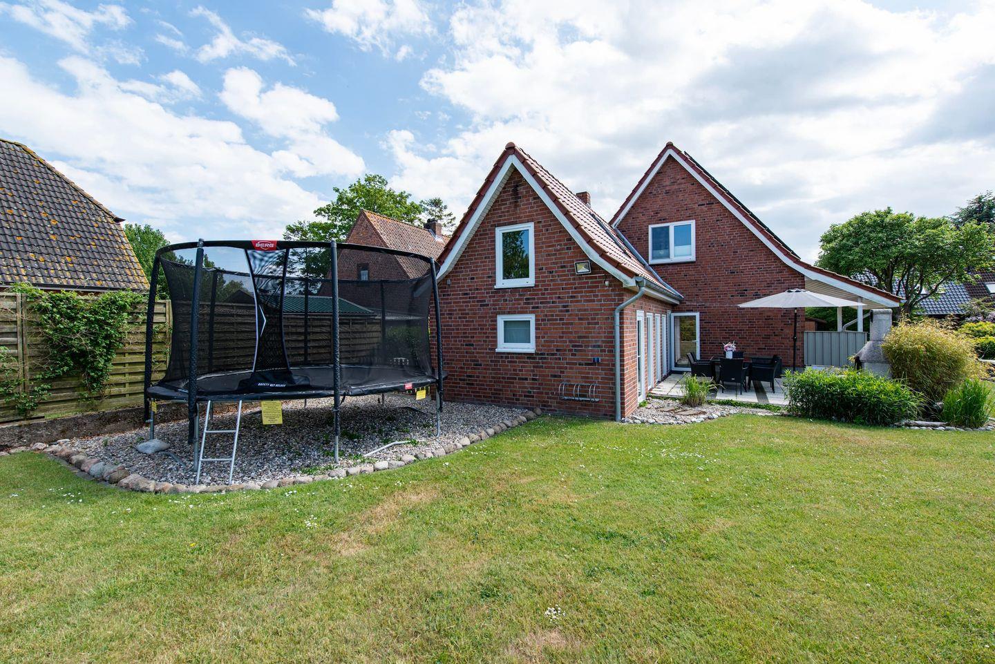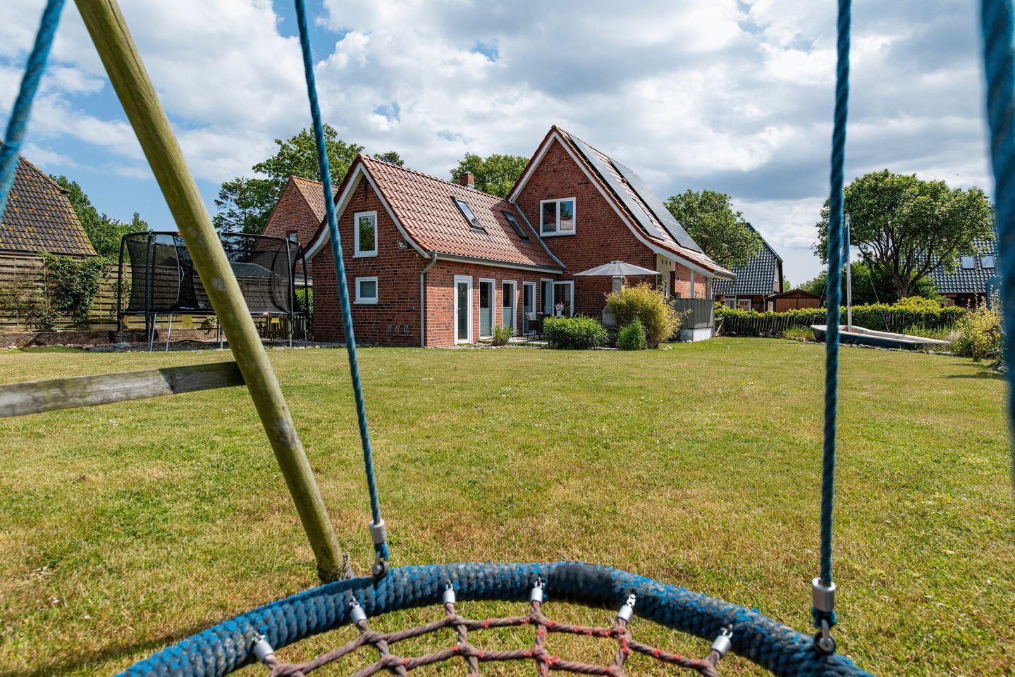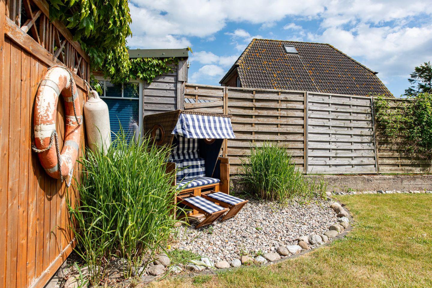 Gerade Familien finden vielfältige Annehmlichkeiten: Ein eigenes Spielzimmer, Kinderspielzeug, sowie praktische Details wie Fliegengitter an den Fenstern, Laminatboden in den Schlafzimmern, Sichtschutz für alle Fenster und eine eigene Waschmaschine sind vorhanden. Im Außenbereich erstreckt sich das 800 m² große Grundstück mit gepflegtem Garten und Liegewiese. Das Angebot für Kinder reicht von Sandkasten, Schaukel, Trampolin bis hin zu einem Strandkorb – ideale Voraussetzungen für Spiel und Erholung an der frischen Ostseeluft. Ein Gartenhaus, ein Kohlegrill und Gartenmöbel bieten den perfekten Rahmen für gesellige Stunden im Freien.