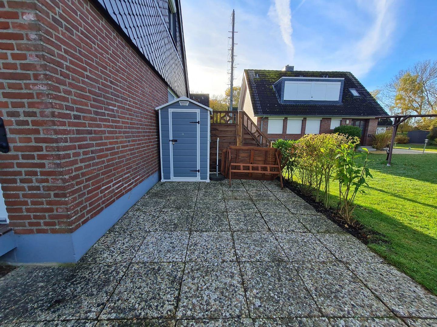 Für erholsame Stunden im Freien steht Ihnen eine eigene Terrasse zur Verfügung. Der angrenzende Gemeinschaftsgarten bietet Platz zum Spielen und Entspannen. Ein Gartenhaus und ein Kohlegrill ermöglichen gesellige Abende im Freien. Ein kostenfreier Parkplatz vorhanden.