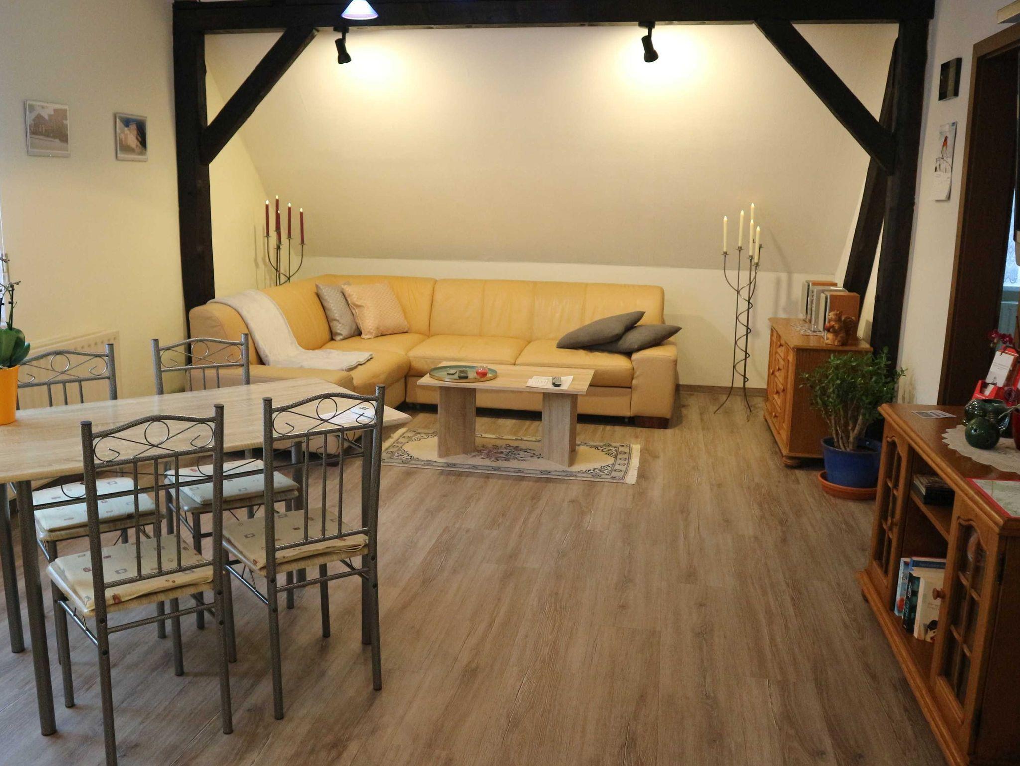 Es erwartet Sie eine modern eingerichtete 50m² große Wohnung im 1. OG mit offener Wohnküche inkl. Sitzecke, Smart-TV, WLAN-Radio, DVD/CD-Player, Bad/WC, Wohnbereich mit Schlafcouch sowie Schlafzimmer mit Doppelbett.