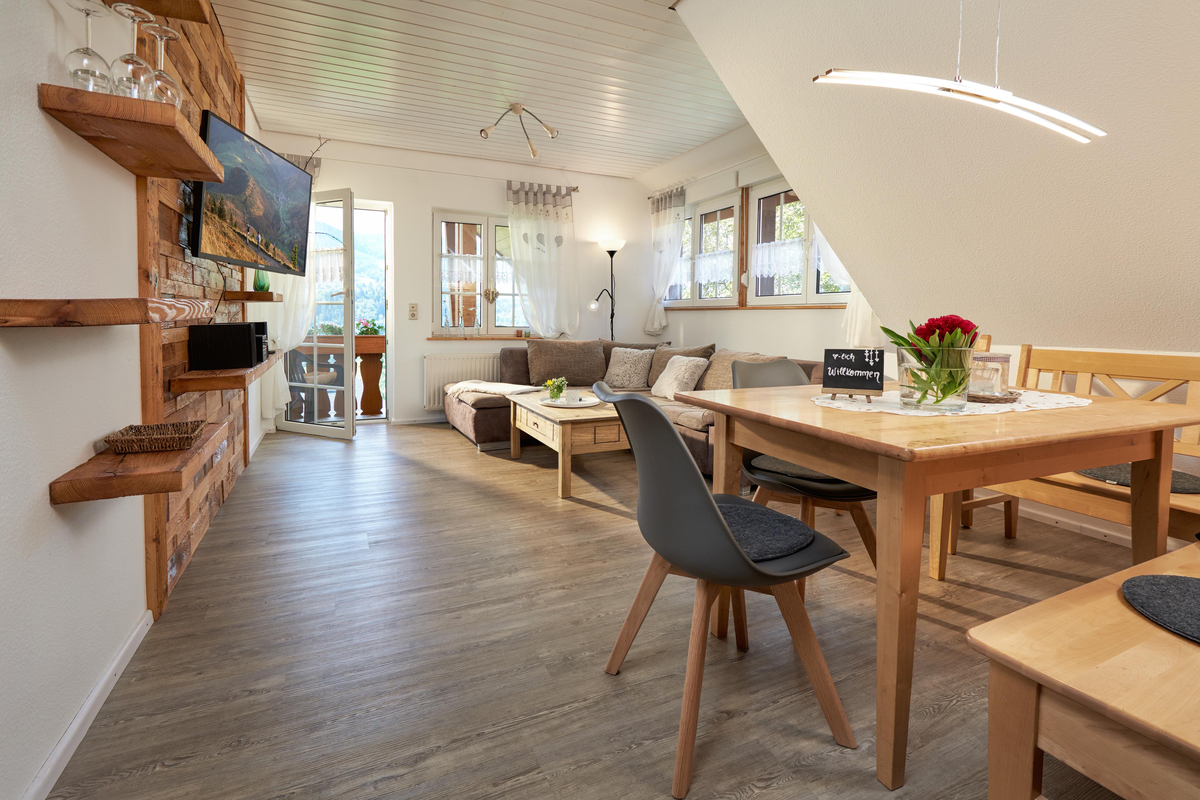 Unsere große Maisonette-Ferienwohnung "Sommerwiese" steht für großzügigen Komfort für 2-5 Personen, hell und freundlich eingerichtet mit viel Holz und Liebe für's Detail.