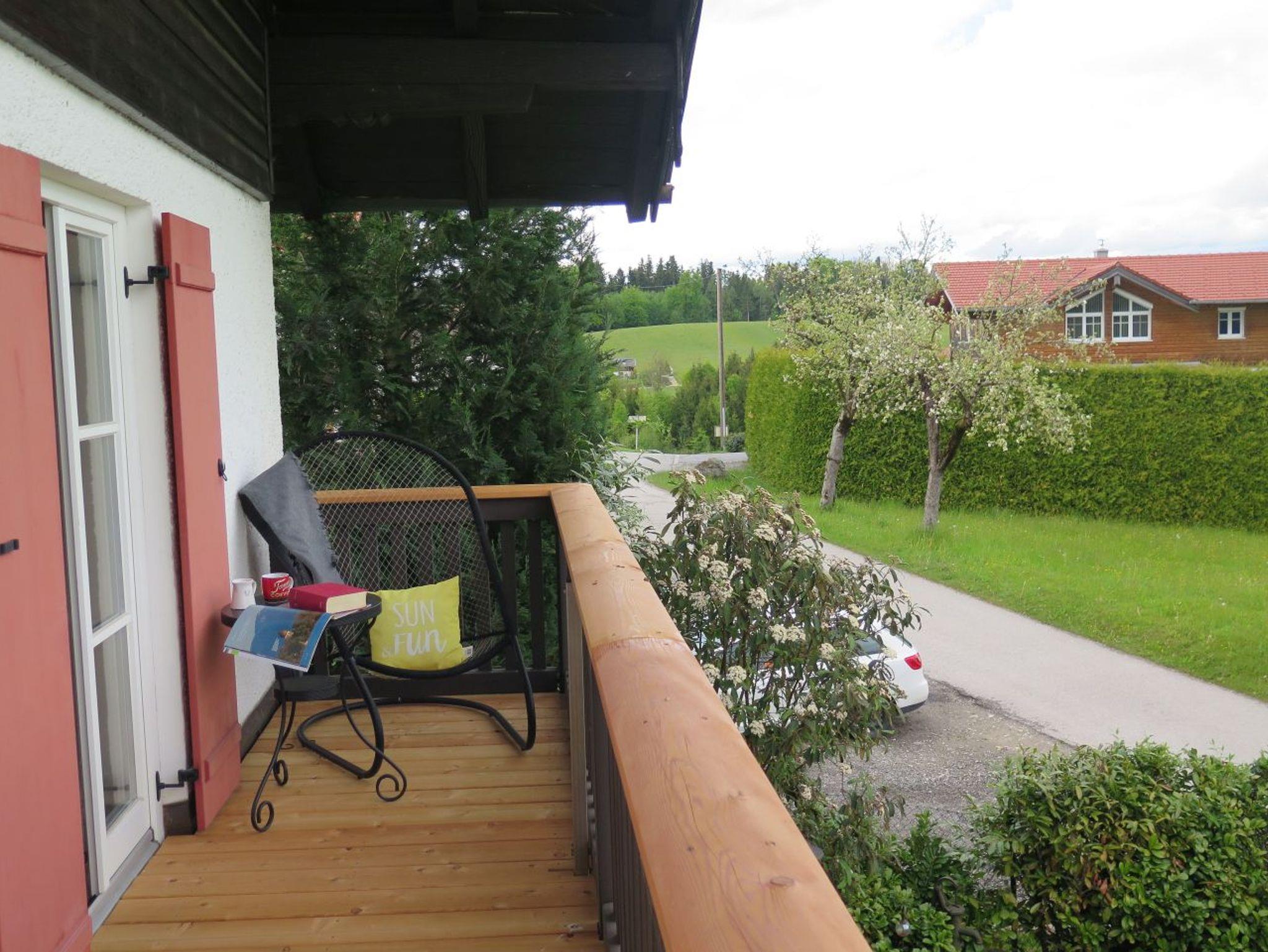 Neue Ferienwohnung, 65 qm, im Obergeschoss eines Einfamilienhauses mit großem Ost- und Südbalkon mit rundum schönster Aussicht, ruhige, sonnige Hanglage im Ortsteil Stockach, nur zehn Gehminuten von Frasdorf entfernt. Genießen Sie den freien Blick auf die ganze Chiemgauer Bergkette. Die Ferienwohnung ist ein idealer Ausgangspunkt für Ausflüge. Wandern Sie auf die Berge direkt vor der Haustüre oder fahren Sie mit einer der nahen Bergbahnen auf Kampenwand, Hochries oder Wendelstein. Herrliche Aussichten auf das Voralpenland und auf viele Berggipfel bis zum Großglockner sind bei gutem Wetter garantiert. Der nahe Chiemsee mit Schloss Herrenchiemsee und der idyllischen Fraueninsel, aber auch München, Salzburg, Rosenheim, Kufstein und Berchtesgaden mit Königsee laden zum Erkunden ein und sind von Frasdorf aus bestens erreichbar. Zahlreiche sportliche Aktivitäten und kulturelle Angebote wie Baden, Kajakfahren, Surfen, Segeln, Golf, Paragliding, Klettern (Hochseilgarten), Minigolf, sowie Museen, Konzerte, Dorf- und Seefeste bietet die nahe Region.
