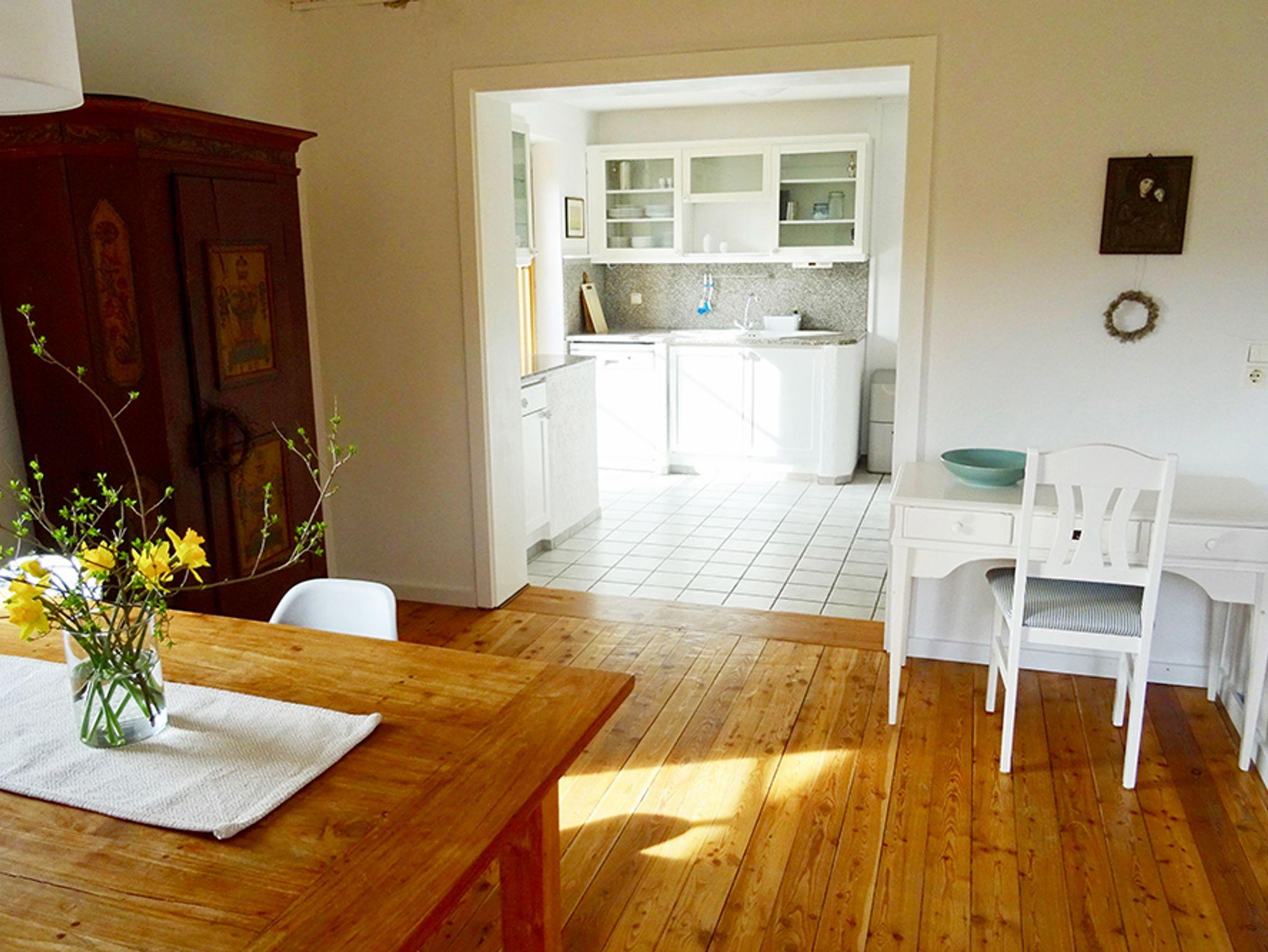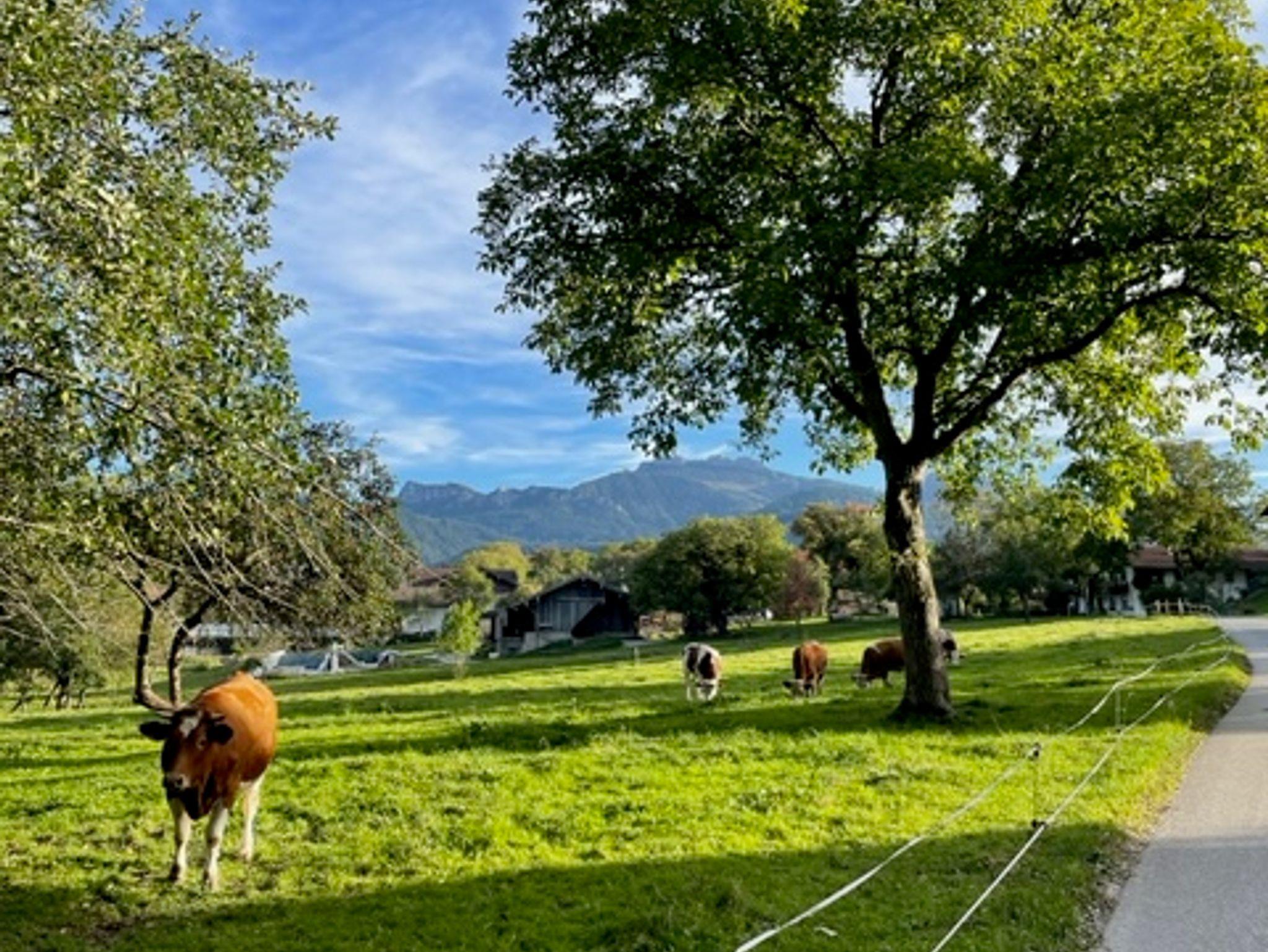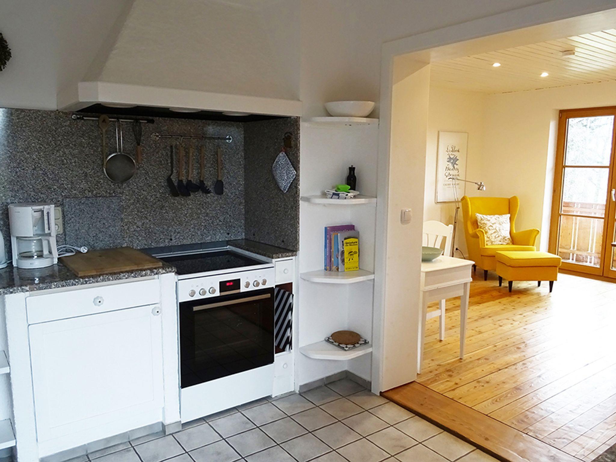 Unser hübsches Haus liegt im kleinen Weiler Wilhelming, neben einem Biobauernhof. In der ruhigen Straße können Kinder spielen und Erwachsene spazieren, ein ruhiger Urlaub garantiert. Im 1. Stock befindet sich unsere Ferienwohnung mit einem großen privaten Süd-West-Balkon. Die Wohnung ist optimal für den Urlaub zu viert geeignet. Auch Eltern mit Kindern sind uns herzlich Willkommen. Vierbeiner müssen leider zu Hause bleiben. Ausstattung: Gemütlicher Loungebereich mit Sofa, Flach-Fernsehgerät mit Giga TV und Stereoanlage, gut ausgestattete Einbauküche mit Herd, Backofen, Kühlschrank, Spülmaschine und viele weitere Küchengeräten. 2 Schlafzimmer mit Doppelbetten, eines mit Bergblick, das Badezimmer verfügt über eine Badewanne mit Dusche, WC extra. Großer Süd-/Westbalkon mit schönem Ausblick, Sonnenliegen, Sitzecke, Tisch und Bänke, W-LAN.