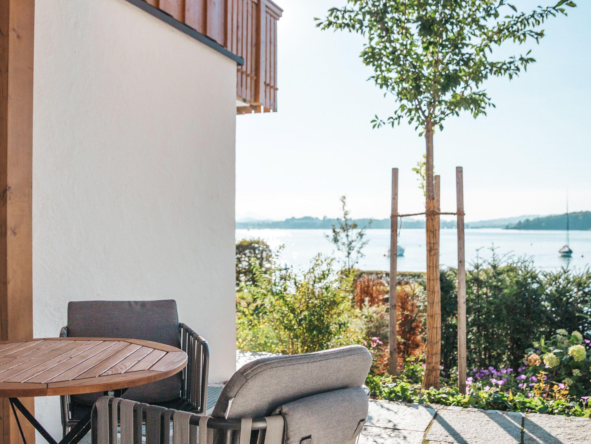 Das malerische Haus auf der Fraueninsel im Chiemsee hat von allen Suiten einen wunderschönen Blick auf den See in Richtung Sonnenuntergang mit der Herreninsel und der dahinter liegenden Bergkette. Die Gäste der 4 Suiten des HOIXL Gütls haben Zugang zu dem direkt vor dem Gütl liegenden privaten Seegrundstück mit eigenem Steg, Badeleiter und Liegen sowie zu der exklusiven Gemeinschaftsauna im Bootshaus.