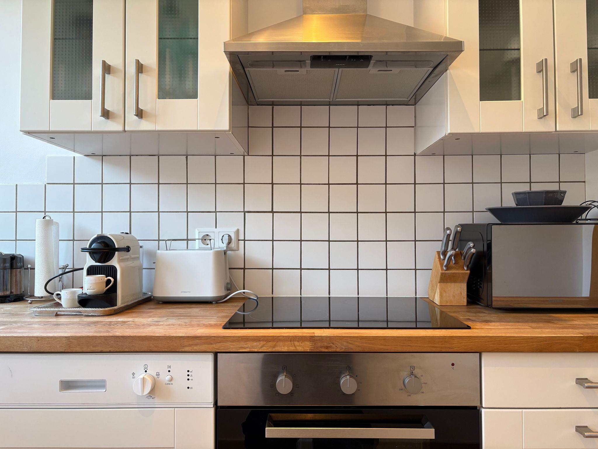 3-Zimmer Appartement (85 qm) mit Balkon im 3. OG; die Ferienwohnung ist ausgestattet mit einem französischen Bett, einem Bett zum Ausziehen (für weitere 2 Personen), Kleiderschrank, TV, Musikanlage, Blu-ray Kommode und einer seperaten Küche. Hier haben Sie alle nötigen Utensilien, wie z.B. Kaffeemaschine, usw.