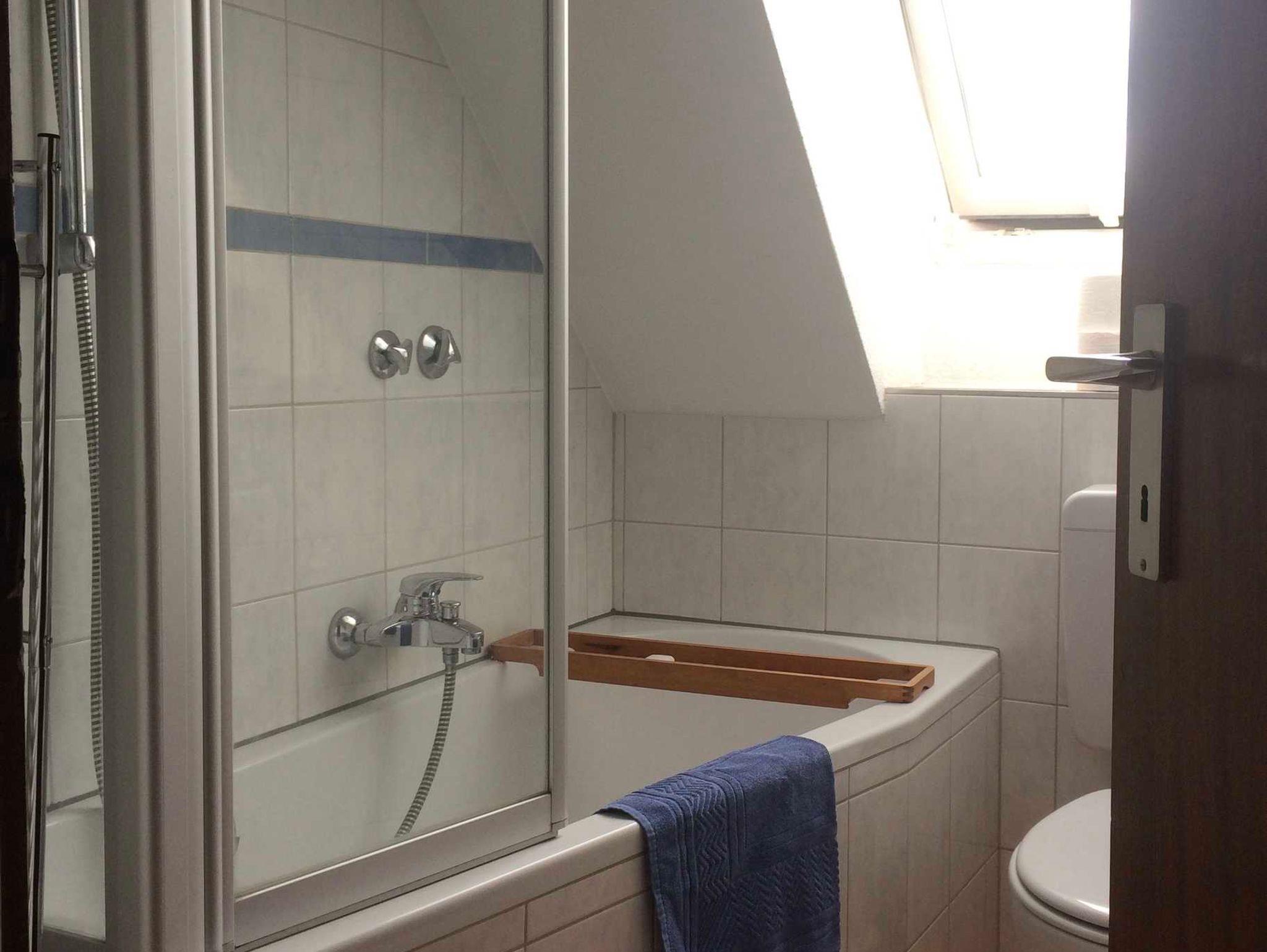 Nichtraucher-Ferienwohnung mit einer Größe von 65 qm, Küche, Esszimmer, Terrasse und Bad mit Duschbadewanne und WC im unteren Geschoss, einem Schlaf- und separatem Wohnraum mit Schreibtisch im Dachgeschoss. TV, Internetanschluss . 1 Doppelbett im Schlafzimmer (getrennte Matratzen); zusätzliche Schlafcouch im Wohnzimmer.