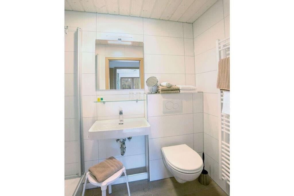On the 1st floor: (Kitchen(Egg Cooker, Tea Towels, Kitchenette, dining table, stove, hob, electric kettle, toaster, coffee machine, oven, dishwasher, fridge, freezer, dishes and cutlery), Living/diningroom(Armchair, Games, Sofa, single sofa bed, TV, dining table, radio, CD player, stereo unit), bedroom(Bed Linen, Wardrobe, single sofa bed, double bed), bathroom(Mirror, toilet, shower, washbasin)) Fire Alarm, Hot Water, Internet Access DSL, Vacuum Cleaner, garage, Internet access, Internet access, First Aid, tumble dryer, washing machine, balcony(Sun Umbrella, garden furniture, sun loungers), heating, garden, parking, ironing board, iron, drying cabinet, Charging post for electric cars, Laundry Package for a fee