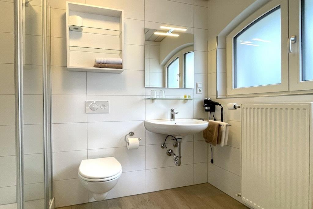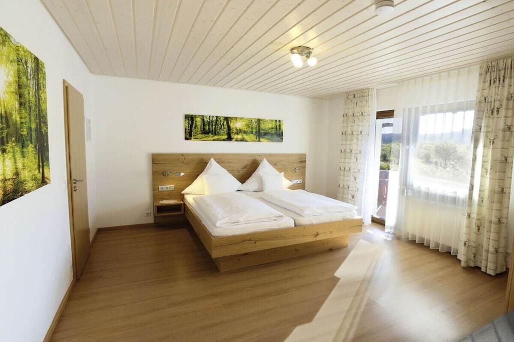 At our country house Anja, we offer a modern and comfortably furnished holiday apartment in a completely peaceful location. The apartment consists of a living room, bedroom, shower/WC, and kitchen. The balcony offers a magnificent view of the surrounding countryside. The two-room holiday apartment at country house Anja provides all the comfort you could wish for during your most precious days of the year. We offer a bread roll delivery service for breakfast. A beverage cellar, a guest laundry room with a washing machine and dryer, and a small fitness room are also available for your use. Wi-Fi is included.