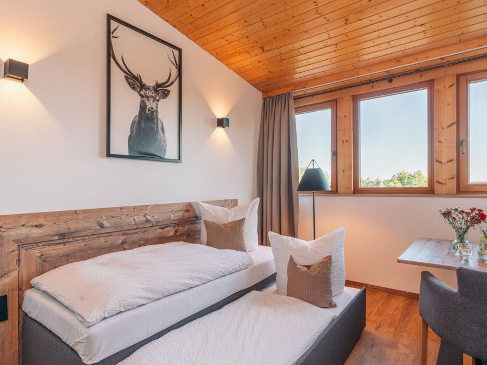 Das Zimmer verfügt auf 14 qm über ein 90 cm x 200 cm großes Bett, ein eigenes Badezimmer, einen TV, einen Kleiderschrank mit Gepäckablage sowie über eine kleine Sitzgruppe.