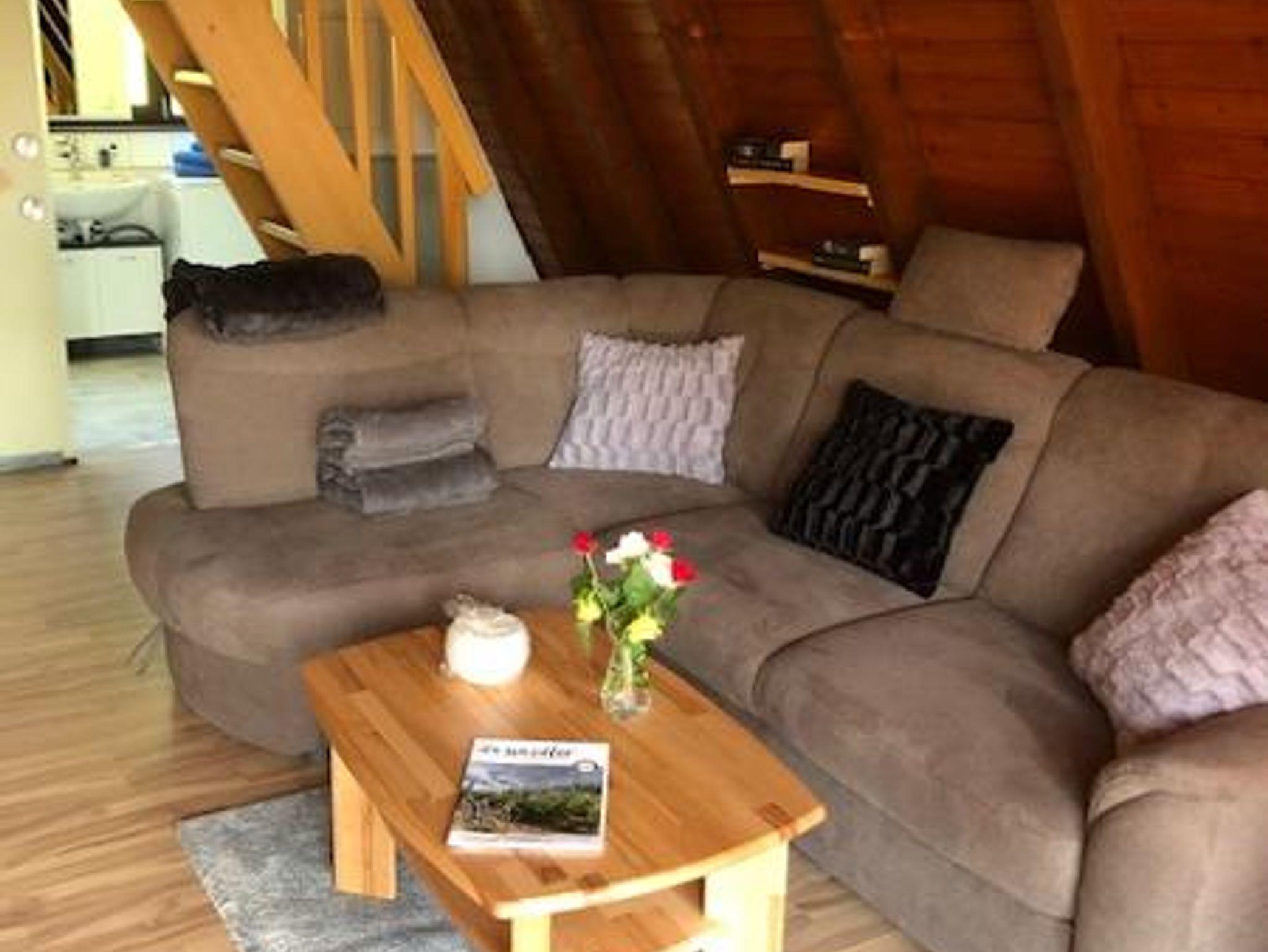 Erholen Sie sich in unserem gemütlichen Nur-Dach-Haus inmitten einer reizvollen Landschaft, mit herrlichem Ausblick, am Waldesrand und doch sehr zentral gelegen. Das Haus bietet auf 55 Quadratmetern alles, was man für einen erholsamen Urlaub braucht: einen gemütlichen Wohn- und Essbereich mit Küchenzeile und einem Bad im Erdgeschoss, sowie bis zu vier Schlafplätze unter dem Dach.