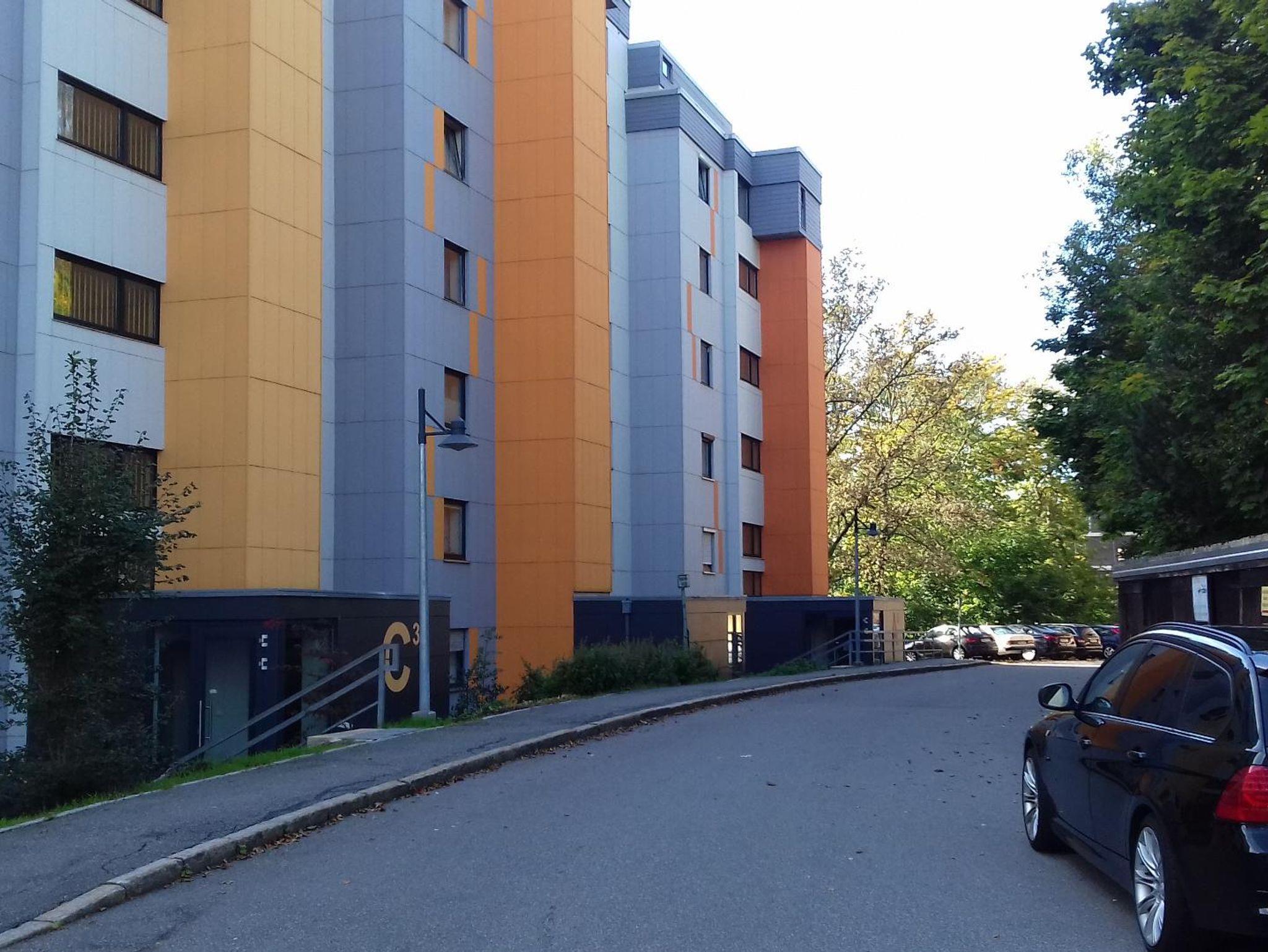 Sie können vor dem Haus, vor dem JKL-Hauptgebäude kostenfrei parken oder eine Stunde lang vor dem Haus NMO. In der Tiefgarage kostet die Stunde 1 Euro, für ein Tag 5 Euro. Das Haus verfügt über einen Aufzug.