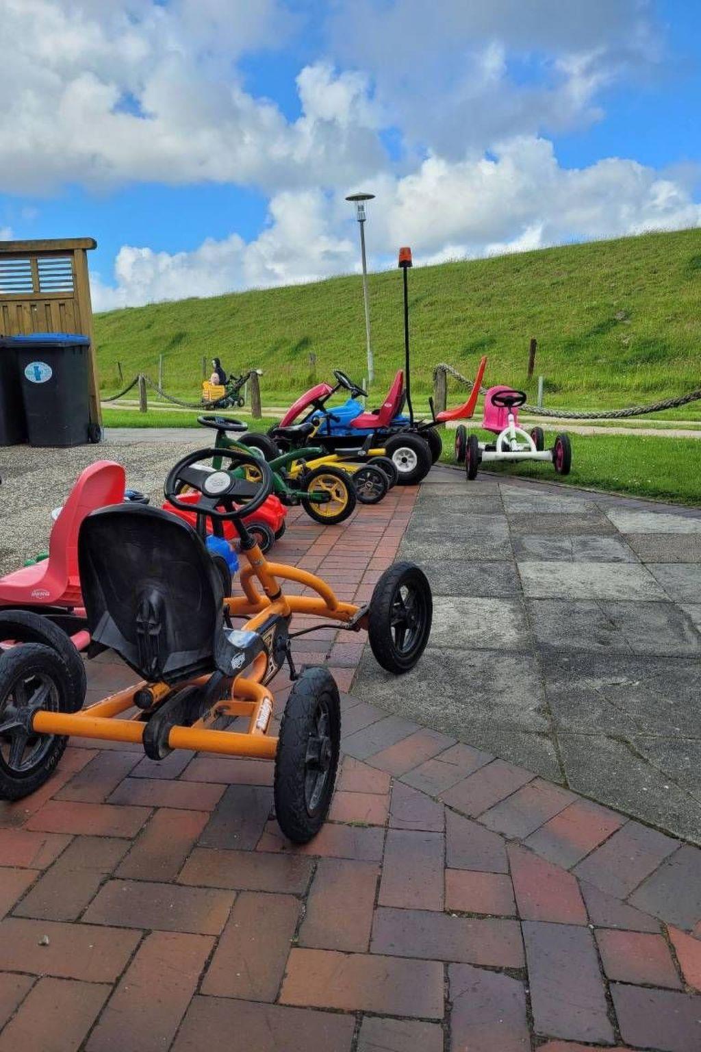 Playground with garden trampoline and pedal vehicles (go-karts, bobby cars etc.) for young and old.