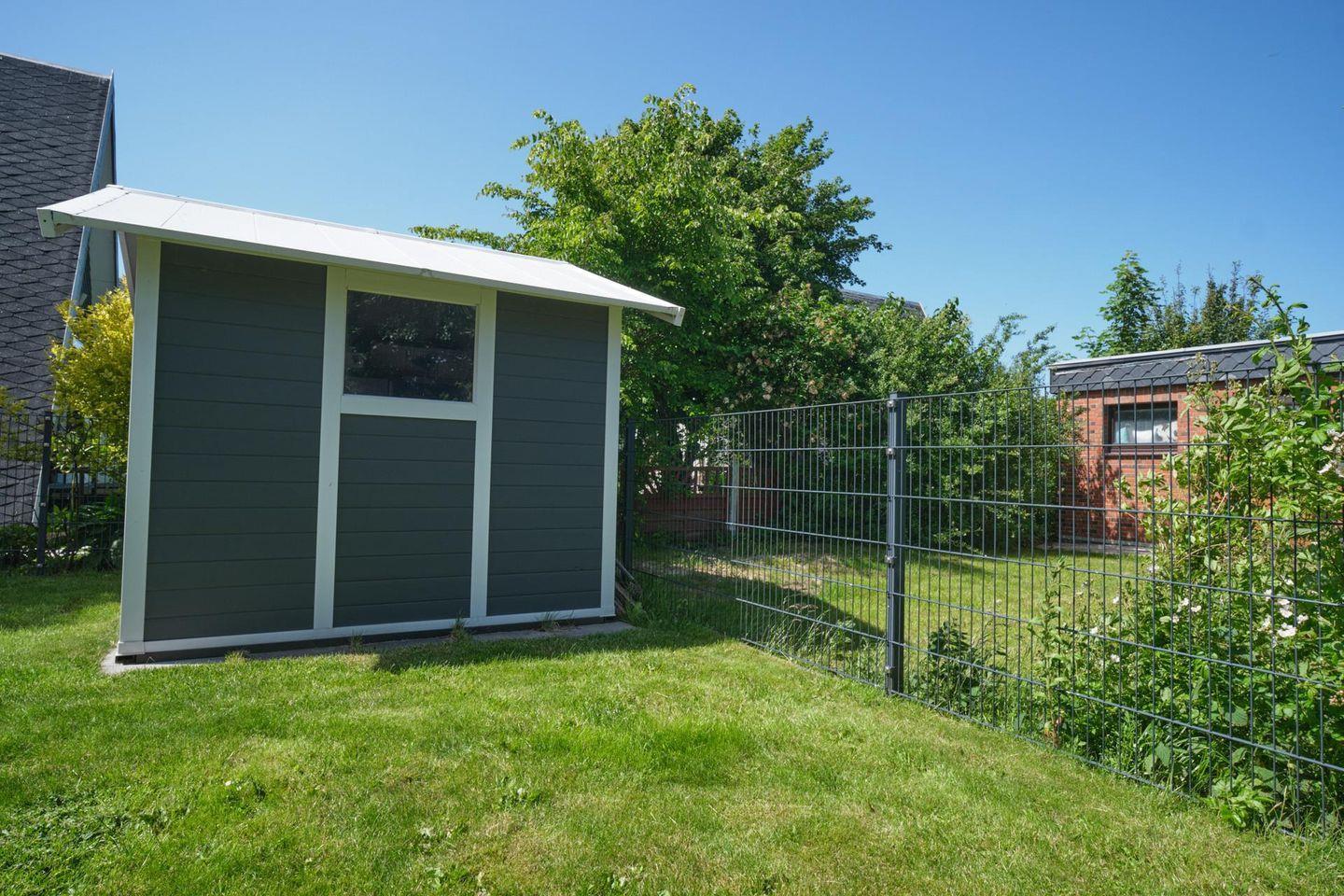 Vom Wohnzimmer aus haben Sie direkten Zugang zu einem ca. 300 m² großen, komplett eingezäunten Garten.