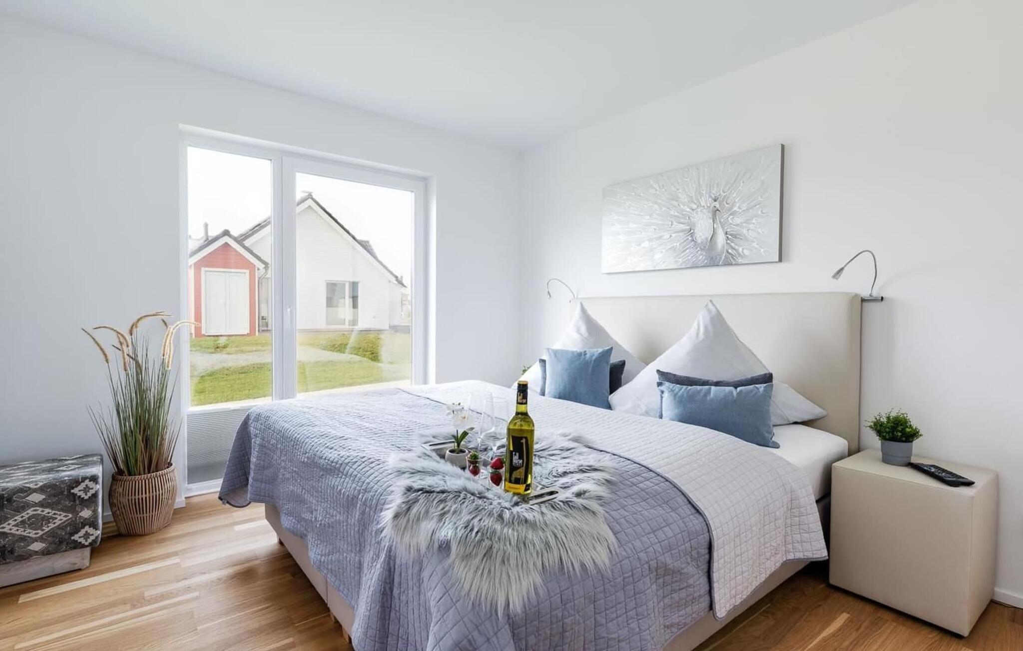 Zwei Schlafzimmer geben Platz für 4 Personen. Ausgestattet mit Boxspringbetten sorgen sie bei Groß und Klein für erholsame Urlaubsnächte.