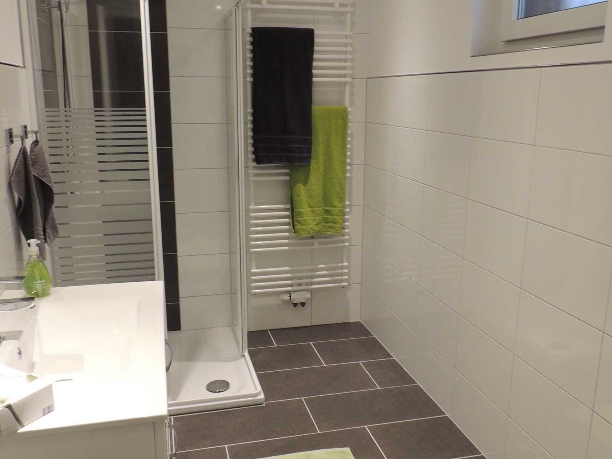 Ein modernes Duschbad mit WC vervollständigt die Wohnung.