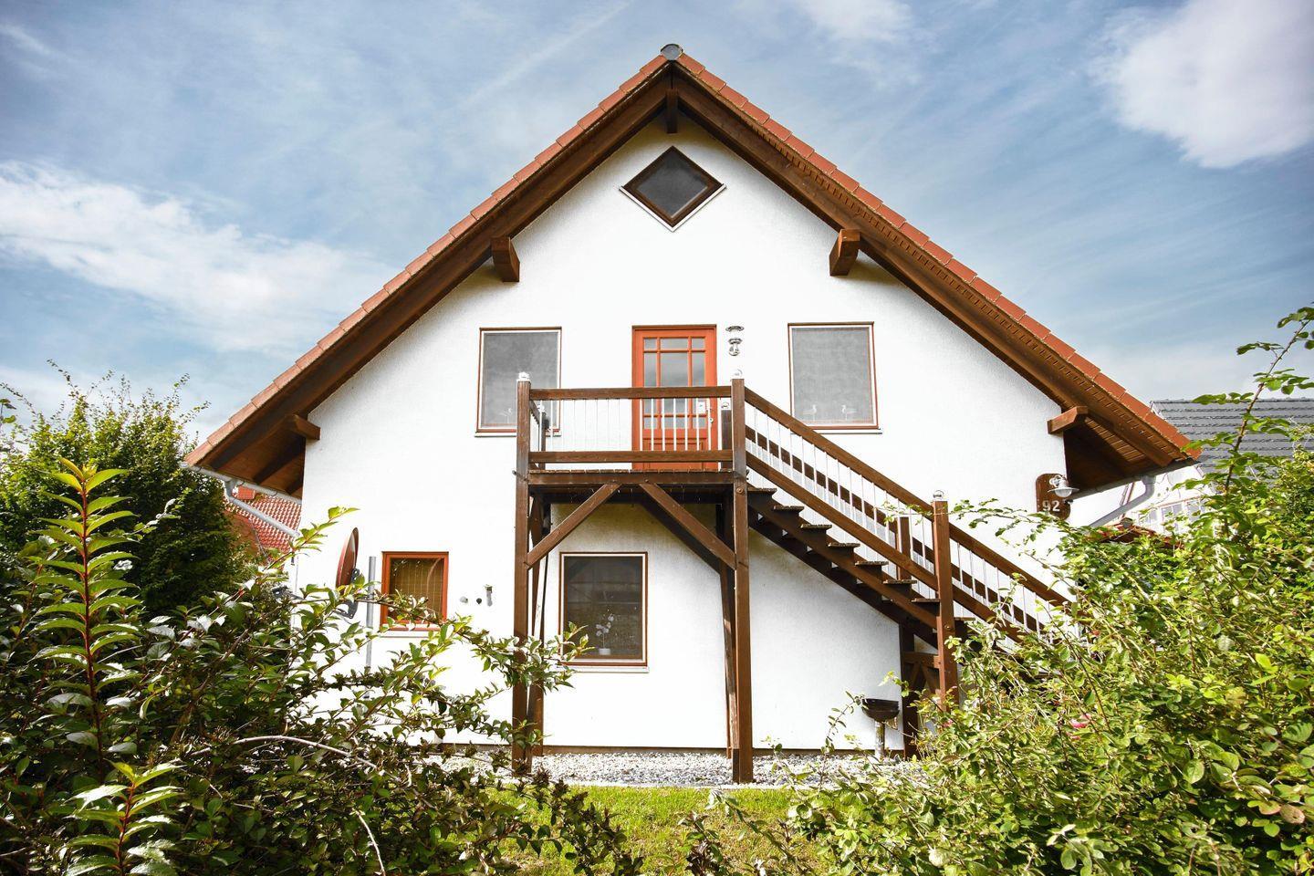 Dieses Domizil ist über eine offene Außentreppe aus Holz erreichbar.