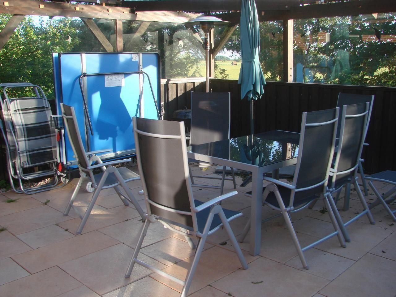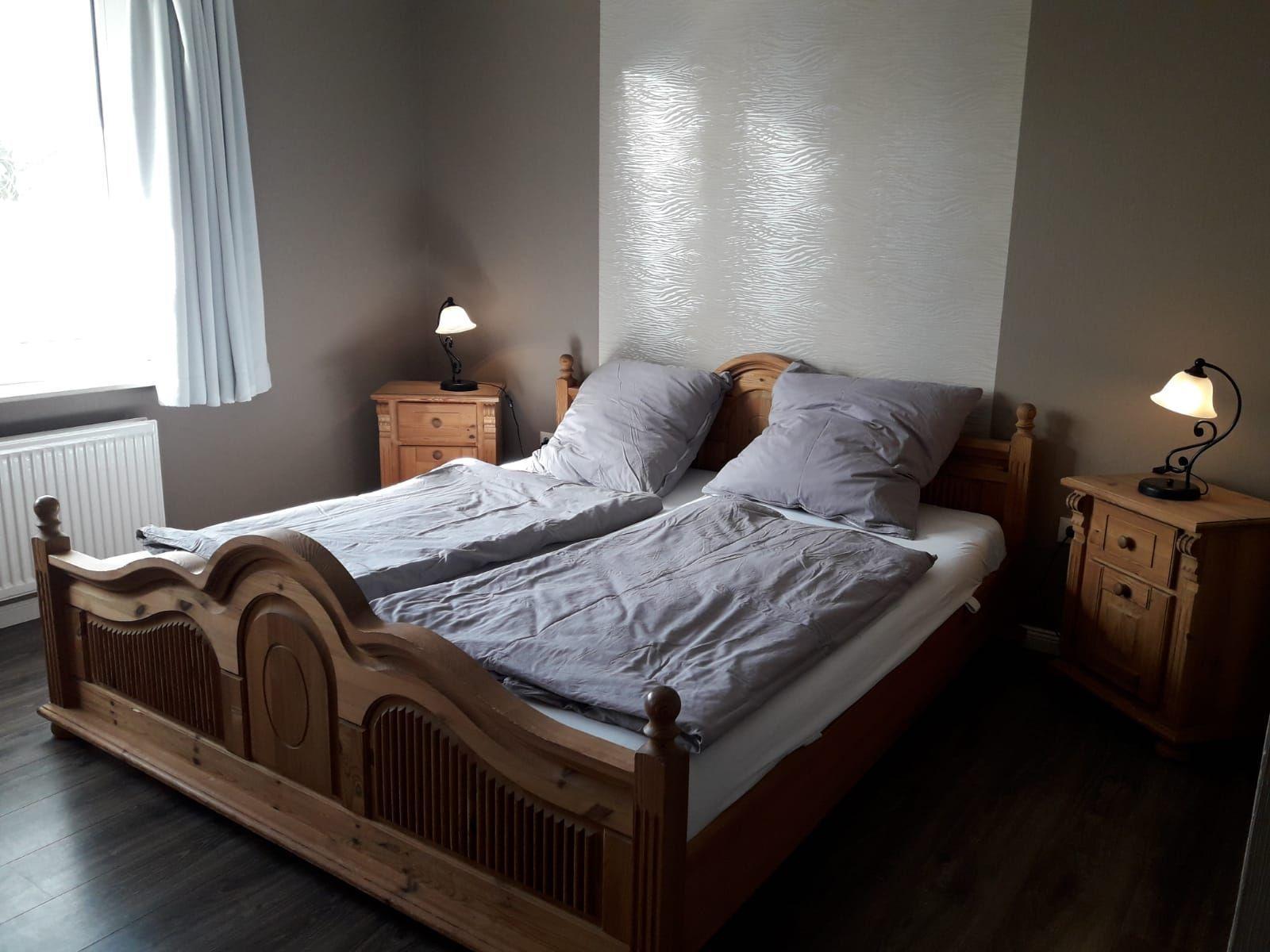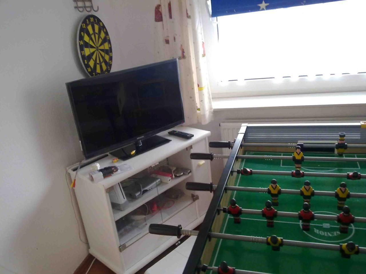 We offer:- a large living room with comfortable seating, spacious dining area, modern large flat-screen HD TV, blue-ray player, CD player, radio, exit to a cosy covered terrace - a comfortably equipped kitchen (microwave, fridge with freezer, dishwasher, ceramic hob, etc.) with dining area for 2 people - a pantry - a fully equipped bathroom/WC with underfloor heating and practical floor shower. A washing machine is also available- another spacious bathroom with corner bath, floor shower, WC and 2 washbasins- two bedrooms with double beds, one bedroom with 140 box-spring bed, spacious wardrobes, 2 bedrooms (one with flat-screen TV and Blue-Ray player)- a games room, large table football, darts game, a 3rd TV, to which a Wii-Cube is connected. TV, to which a Wii console with many games is connected - 4 good bicycles (including 2 children's bikes) - garden loungers, garden furniture, seating for 6 people on two covered terraces, a folding table tennis table, rackets and balls are available - a free telephone (flat rate to the German landline network) and a fast WLAN connection via broadband.