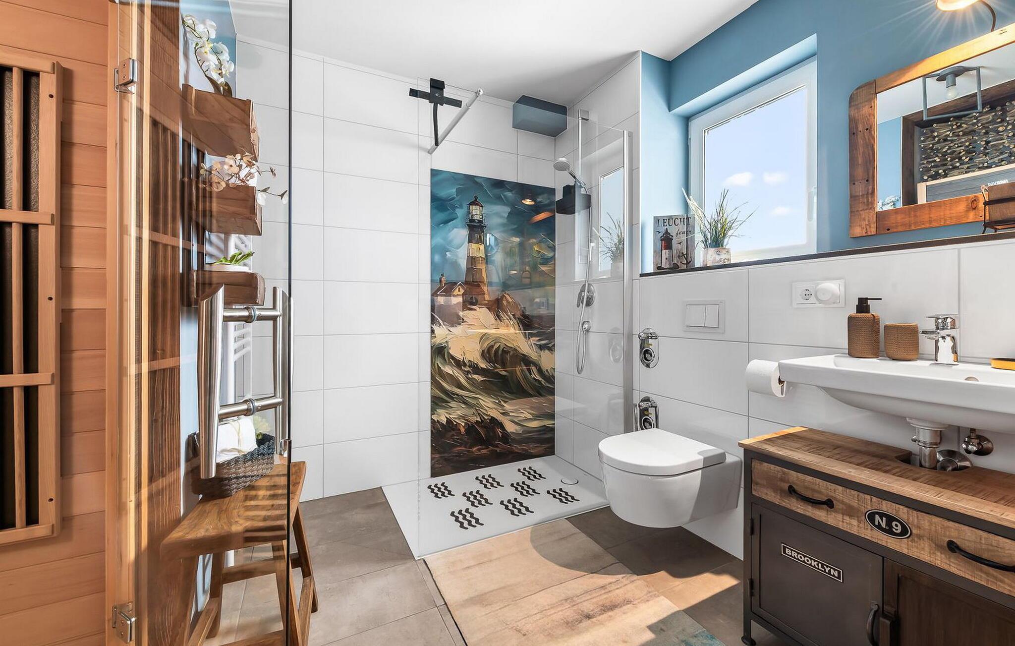 Auch der Urlaub kommt hier nicht zu kurz. Die individuelle Einrichtung und hochwertige Ausstattung laden euch ein, jeden Moment eures Urlaubs in vollen Zügen zu genießen, ganz gleich, wie das Wetter ist. An kühleren Tagen könnt ihr es euch vor dem knisternden Kamin gemütlich machen oder die Infrarotsauna für wohlige Wärme nutzen. Bei Sonnenschein erwartet euch der große Balkon mit Blick auf die Schleiwiesen, wo ihr die Morgen- und Mittagssonne genießen könnt. Später könnt ihr euch auf der gemütlichen Lounge auf dem zweiten Balkon entspannen oder einen gemeinsamen Grillabend einläuten.