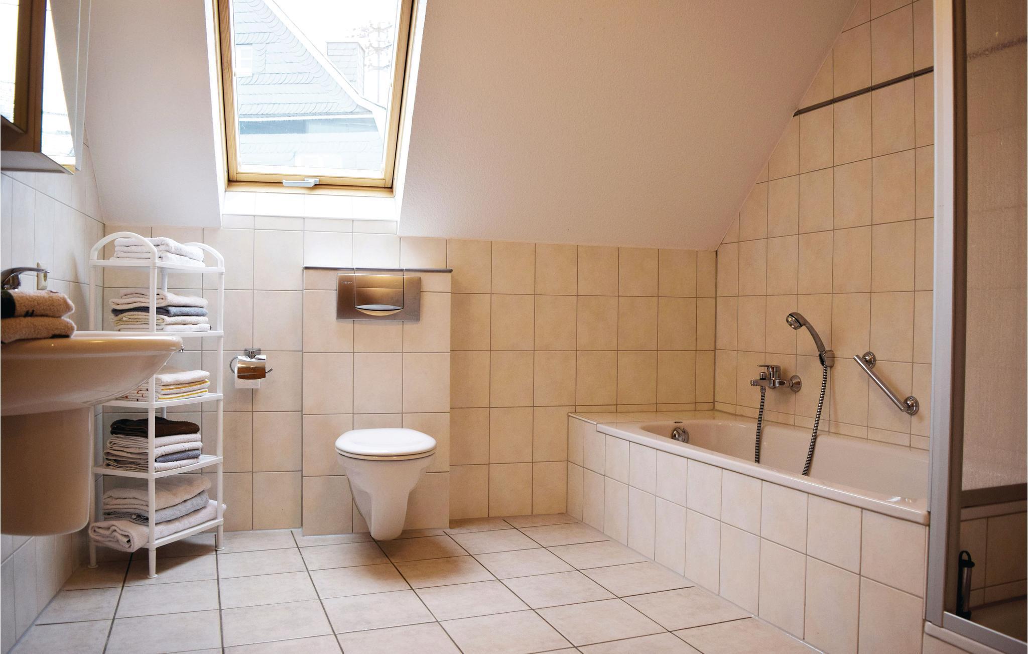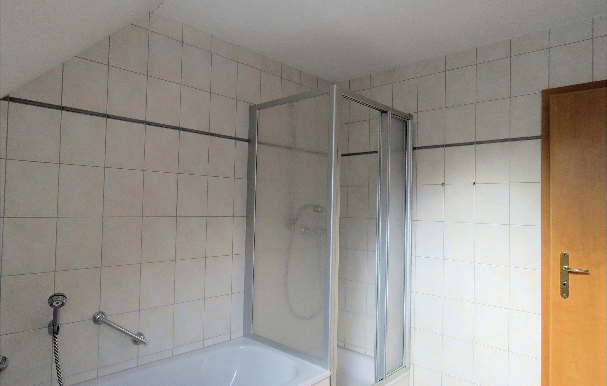 Badezimmer (nr. 1) - WC. Warmes und kaltes Wasser. Dusche und Badewanne