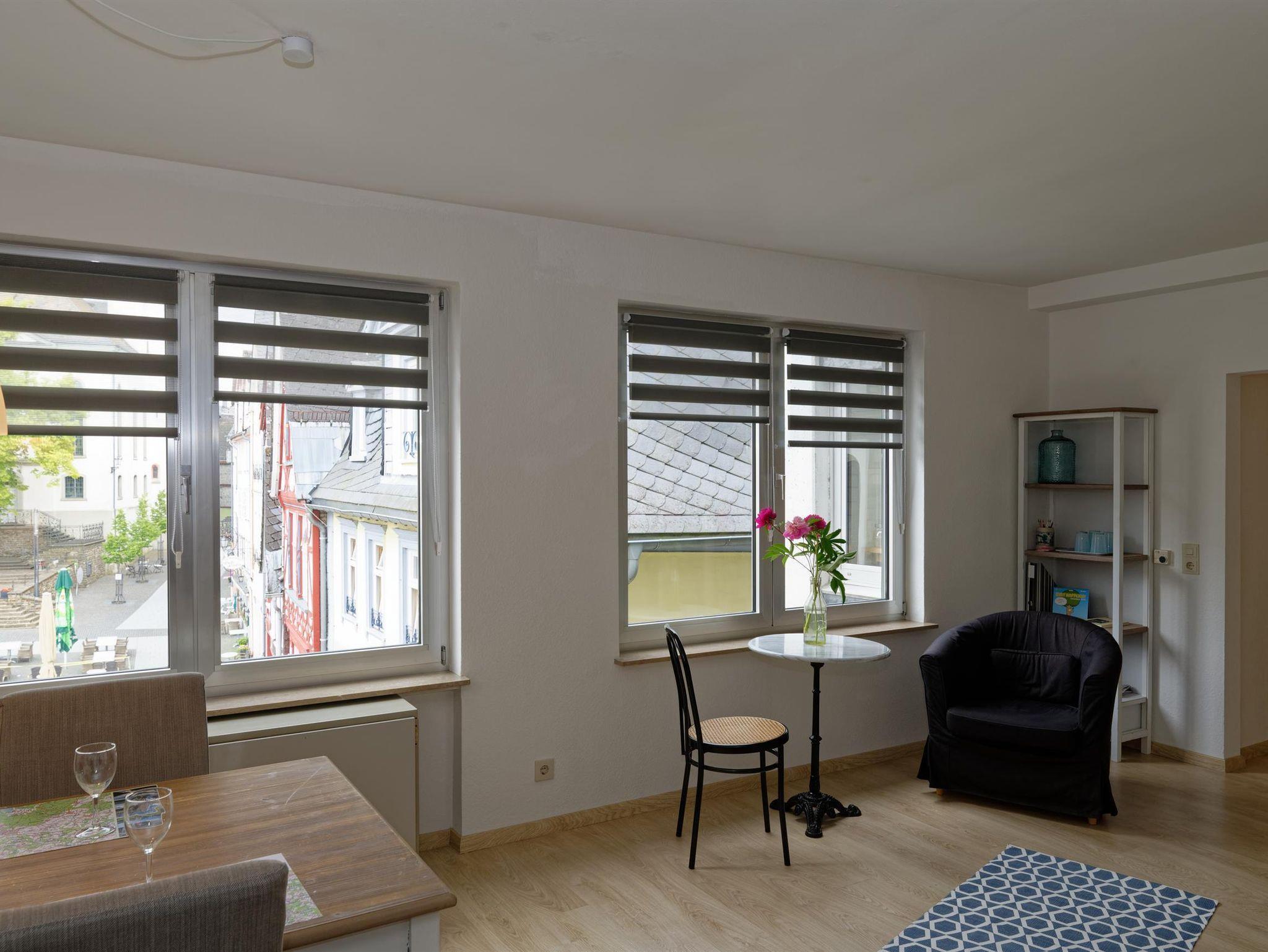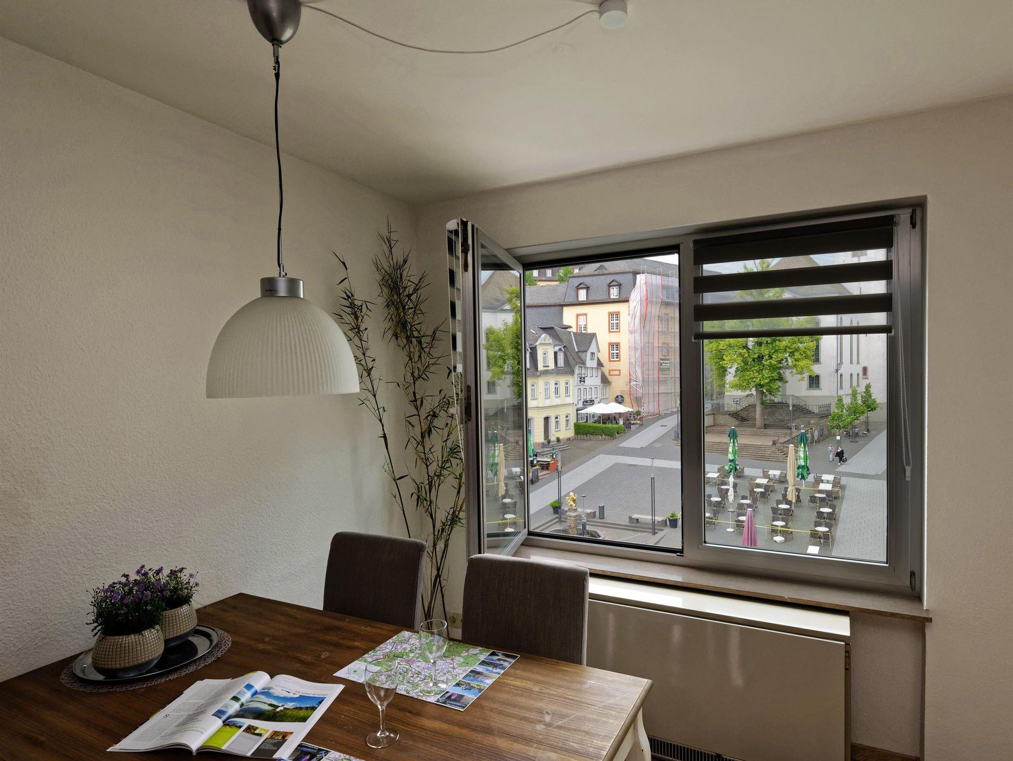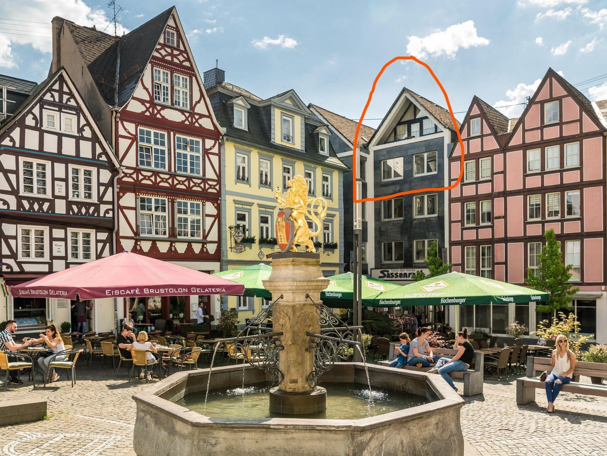Von der Ferienwohnung mit Studio hat man einen exklusiven Blick auf den Marktplatz mit dem Löwenbrunnen, den gemütlichen Fachwerkhäusern sowie den Restaurants und Cafés.