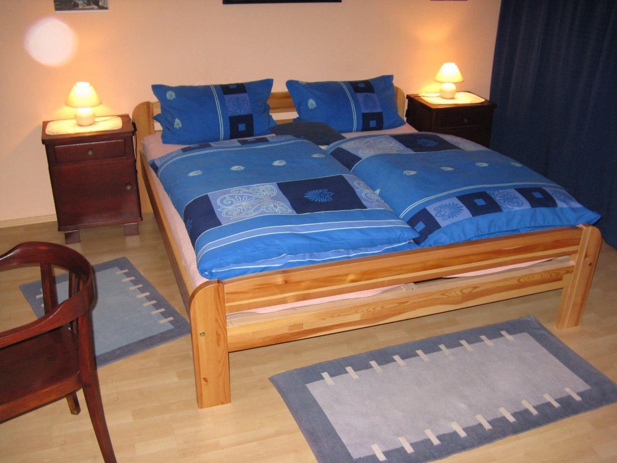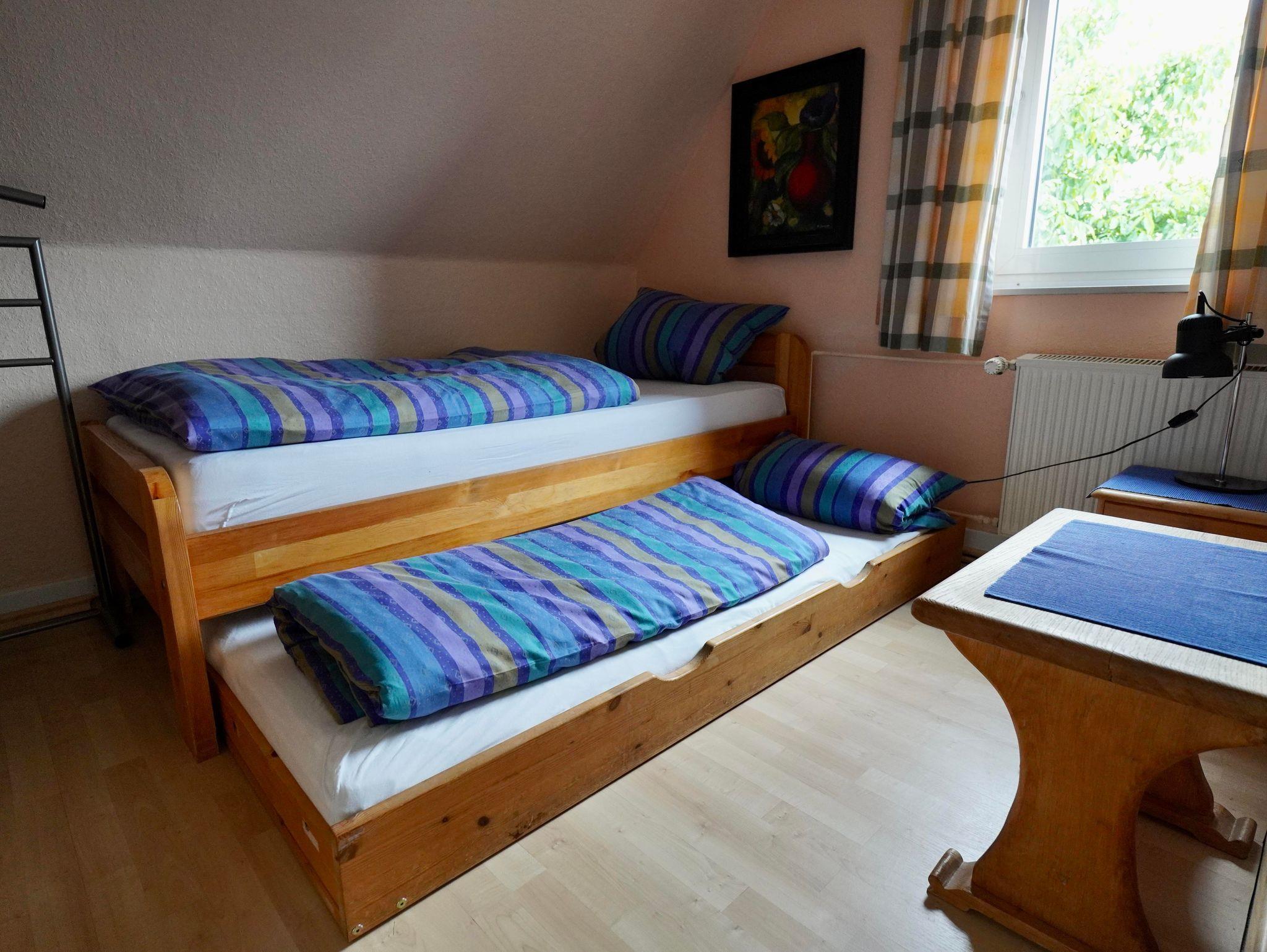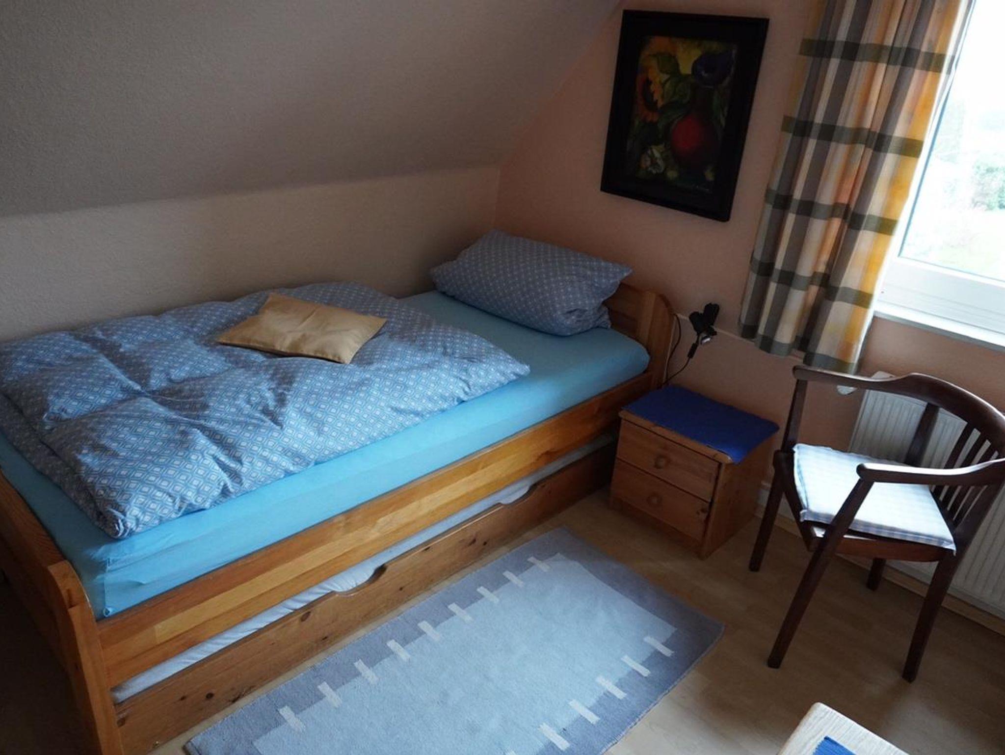 Das Gästehaus vefügt über 2 Doppelzimmer mit Doppelbetten, 1 Einzelzimmer mit Einzelbett/Ausziehbett, 1 Wohn/Schlafraum mit Einzelbett und 2 Badezimmer, separat eine Waschmaschine.
