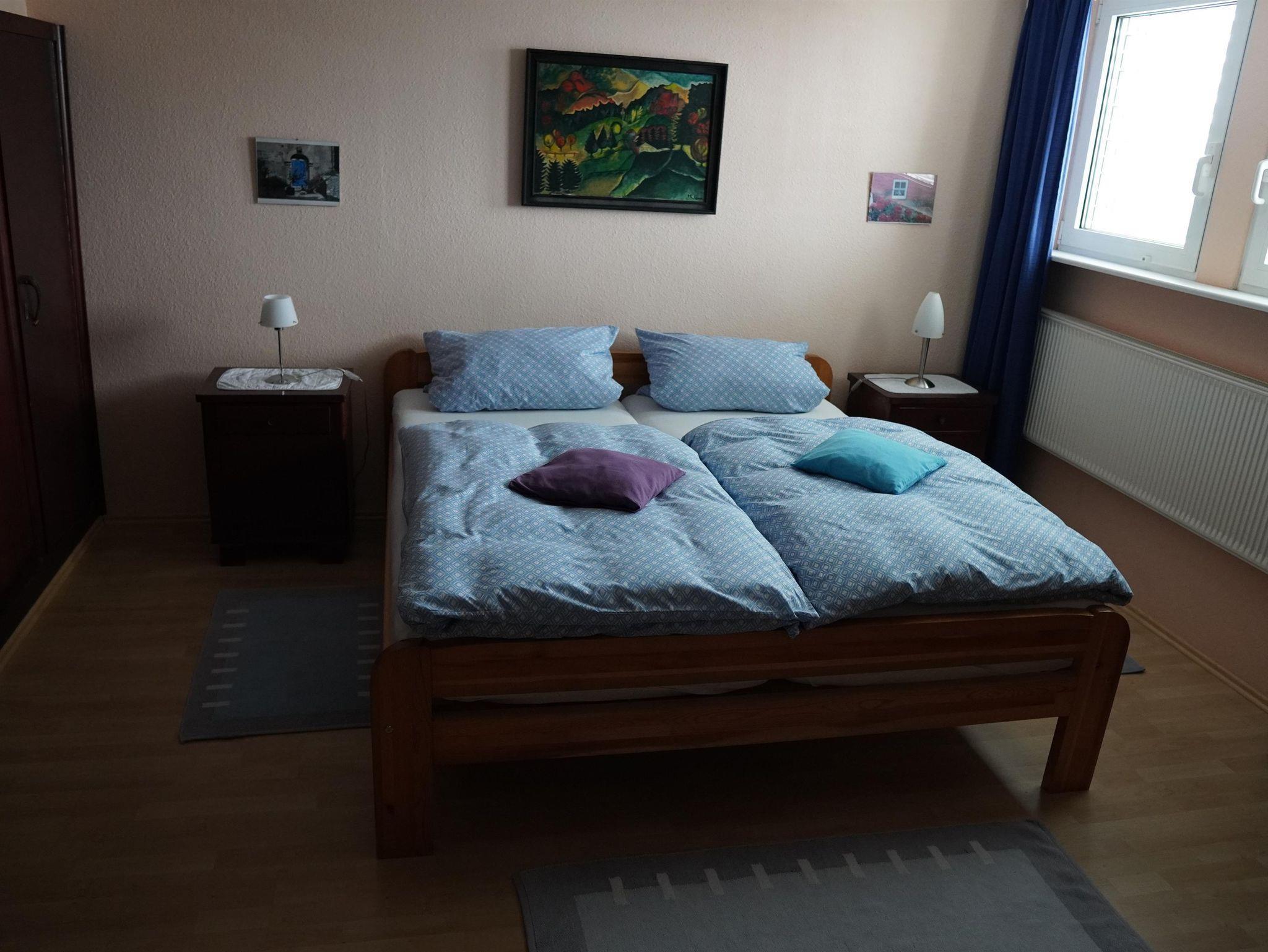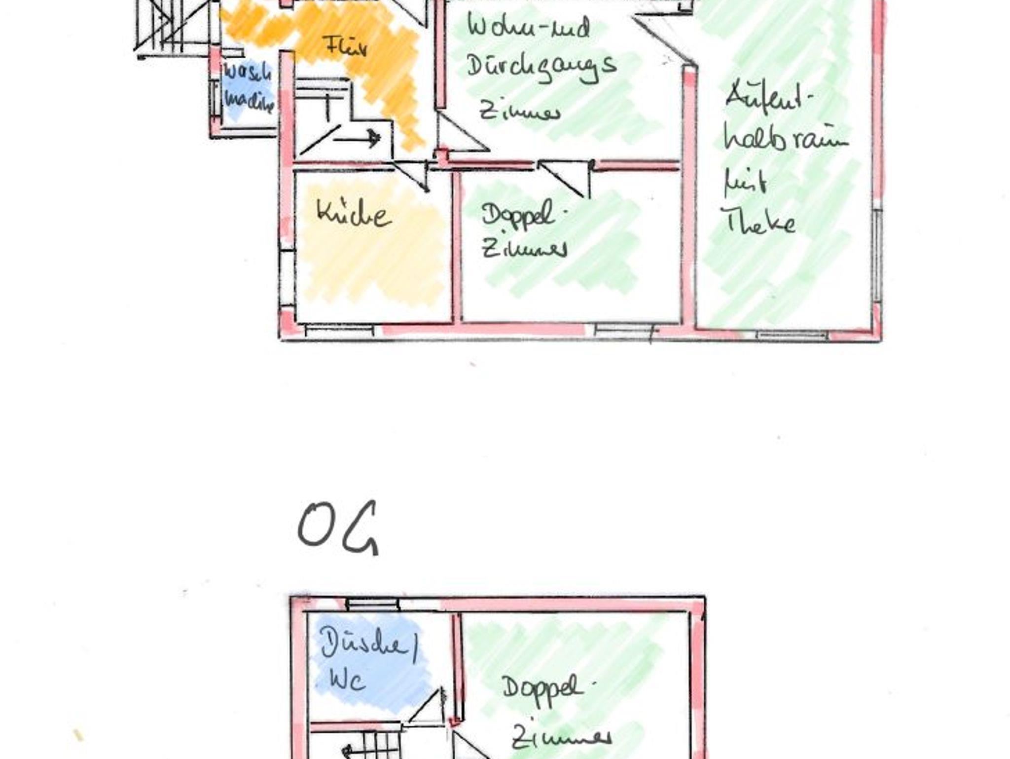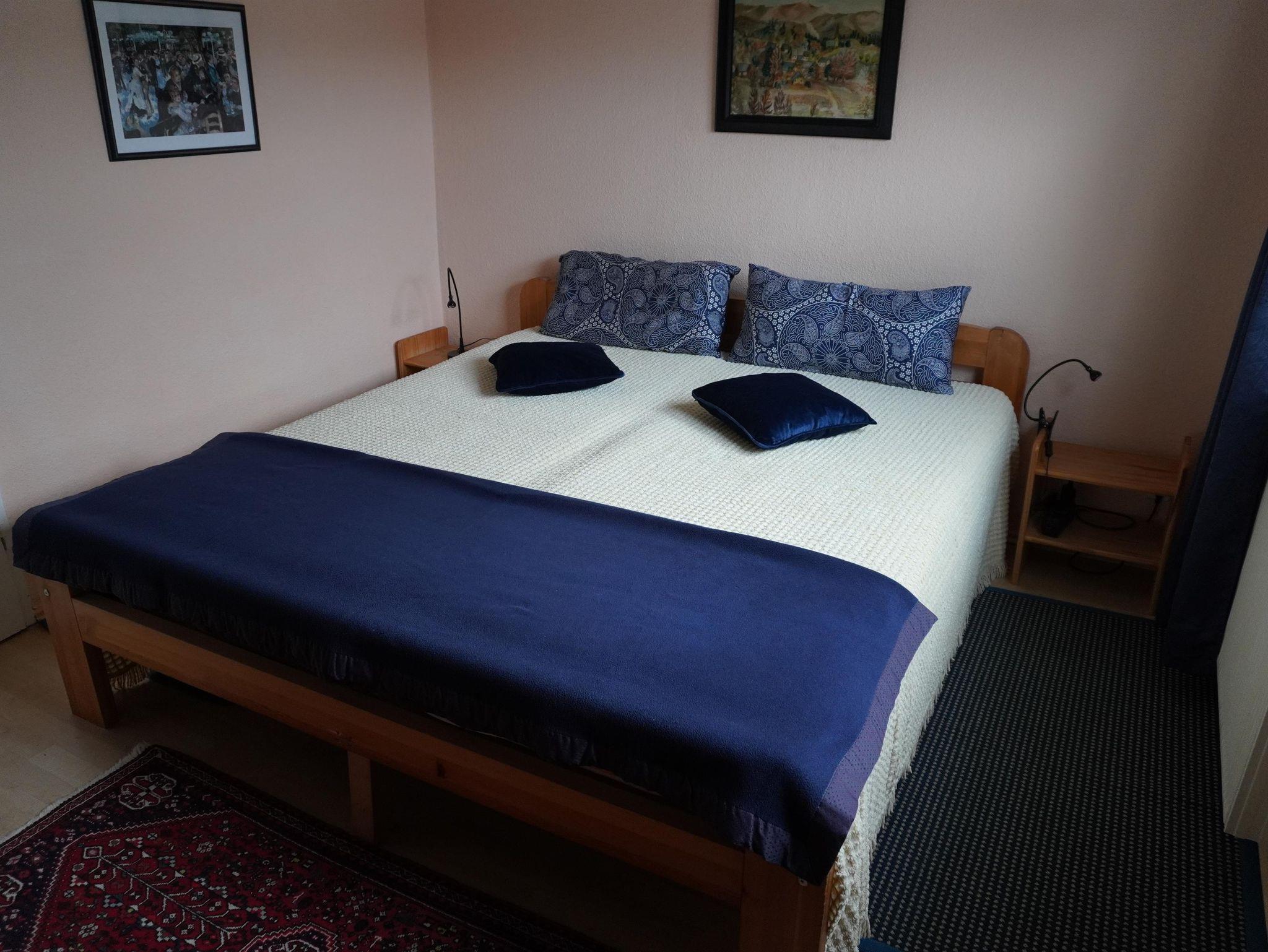 Das Gästehaus vefügt über 2 Doppelzimmer mit Doppelbetten, 1 Einzelzimmer mit Einzelbett/Ausziehbett, 1 Wohn/Schlafraum mit Einzelbett und 2 Badezimmer, separat eine Waschmaschine.