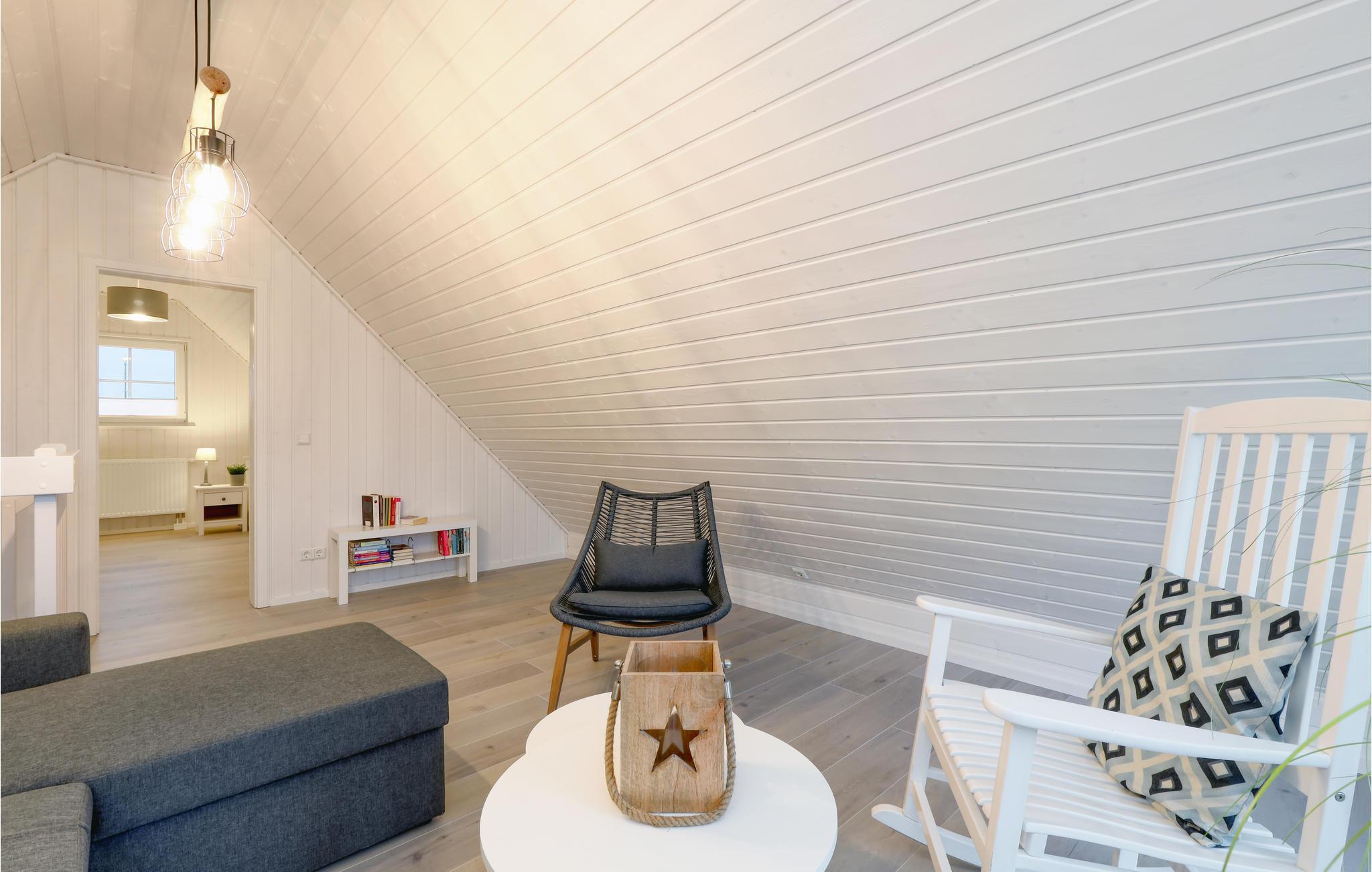 Das Haus ist modern eingerichtet und bietet Platz für bis zu 6 Personen. Es verfügt über zwei helle Schlafräume mit einem Boxspringbett und zwei Einzelbetten. Weiterhin gibt es zwei gemütliche Schlafsofas.