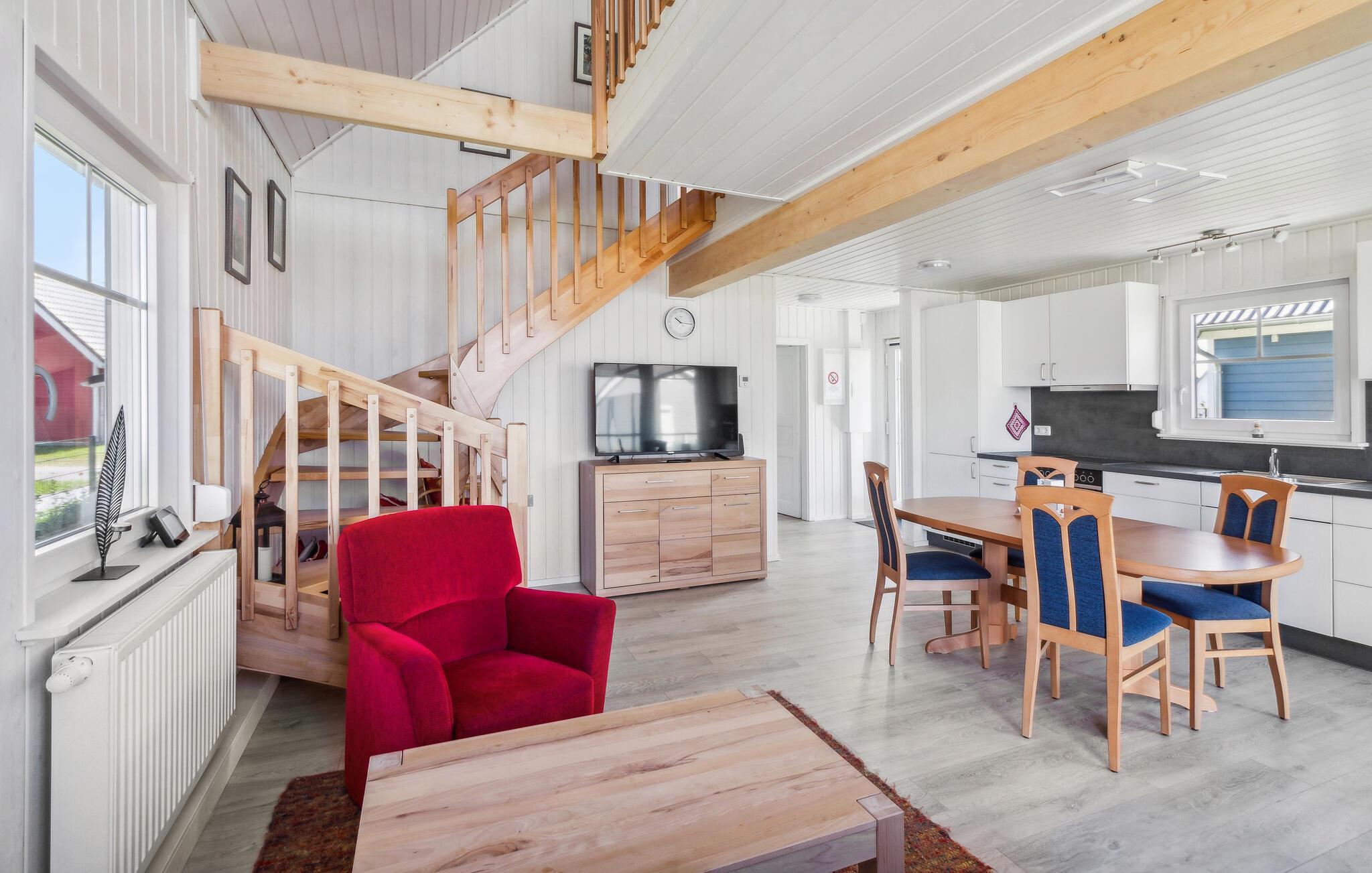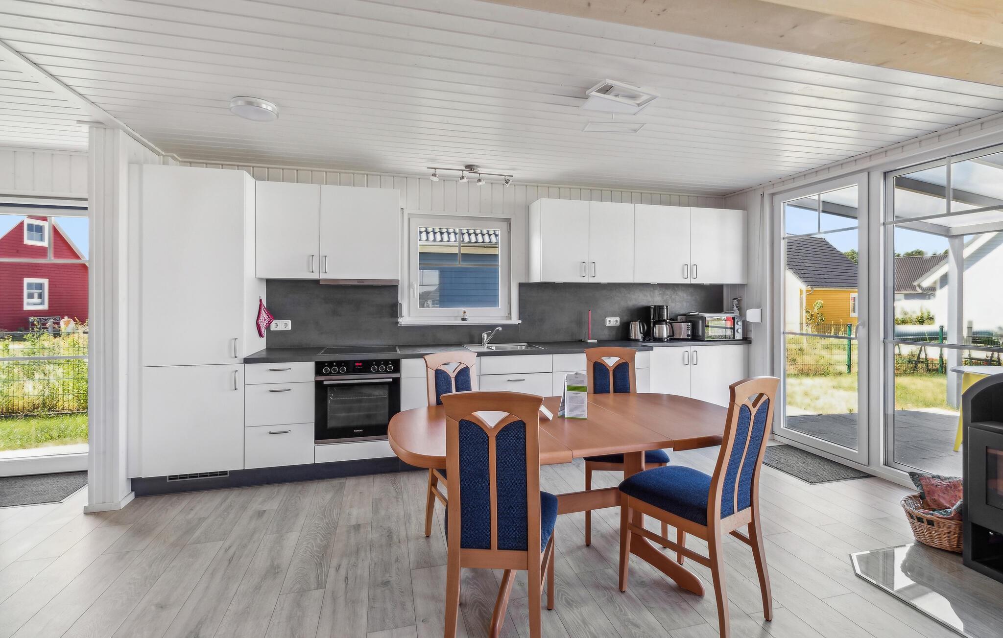 Das gemütlich und geschmackvoll eingerichtete Holzferienhaus liegt in der Nähe zum Wasser und bietet Ihnen eine herrliche Aussicht über die Landschaft. Durch die riesigen Panoramafenster, die sich vom Boden bis zum Dach erstrecken, fällt der Blick immer wieder und von überall her auf die bezaubernde Landschaft. Zu jeder Jahreszeit können Sie es sich nach langen Tagen in der Natur im gemütlichen Wohnraum im Erdgeschoss gemütlich machen. Wenn die Temperaturen sinken, gibt es nichts behaglicheres als vor dem knisternden Kaminfeuer ein Buch zu lesen oder mit der Familie zu kochen und Brettspiele zu spielen.