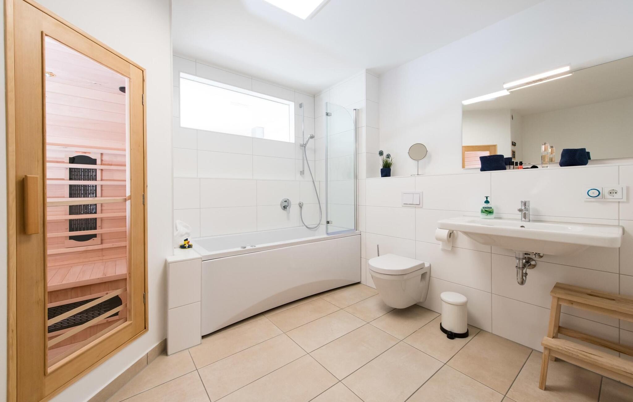 Fußbodenheizung, Whirlwanne und Sauna versprechen Komfort zu jeder Jahreszeit.