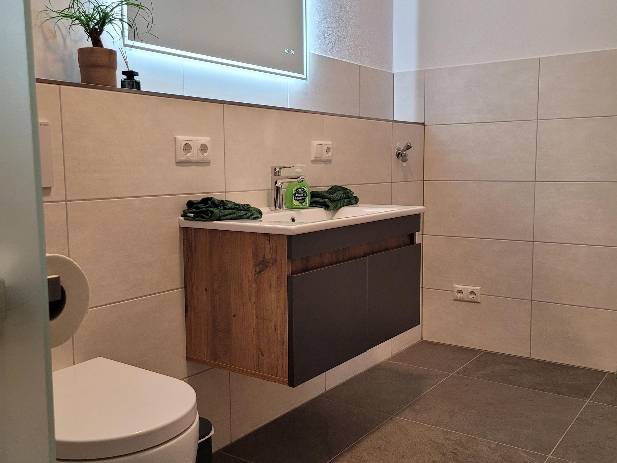 Diese moderne, helle Ferienwohnung im Erdgeschoss unseres Wohnhauses wurde 2025 fertiggestellt und bietet auf 60 m² ein stilvolles Wohlfühlambiente. Der offene Wohn- und Essbereich lädt zum Entspannen und Genießen ein, während das separate Schlafzimmer erholsame Nächte verspricht. Im modernen Badezimmer erwartet Sie eine komfortable Dusche und eine angenehme Fußbodenheizung sorgt in allen Räumen für behagliche Wärme. Es ist auch eine allergikerfreundliche Lüftungsanlage vorhanden.