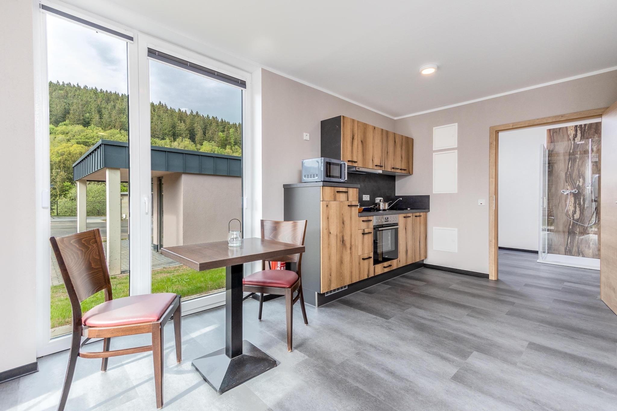 This cozy bungalow in Hallschlag offers a peaceful retreat for families or friends, just steps from Kronenburger See. Designed for comfort, it includes a well-equipped kitchen with a dishwasher, a furnished terrace for relaxing afternoons, and a barbecue for sociable evenings. Optional extras like a sauna, washing machine, and electric bikes add flexibility to your stay. Surrounded by rolling hills, vast forests, and scenic valleys, Hallschlag is a paradise for nature lovers. Well-marked hiking trails like the Eifelsteig provide breathtaking views, while cycling, fishing, and horseback riding are popular local activities. A visit to the historic Kyllburg Castle adds a cultural touch to your trip. Children will enjoy the on-site recreational amenities, and safe parking ensures convenience throughout your stay. With its tranquil setting and easy access to outdoor adventures, this bungalow offers a perfect mix of relaxation and exploration in the heart of the Eifel region.