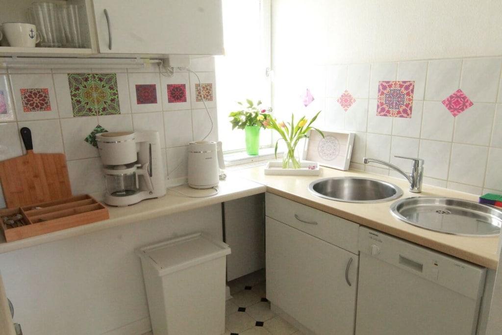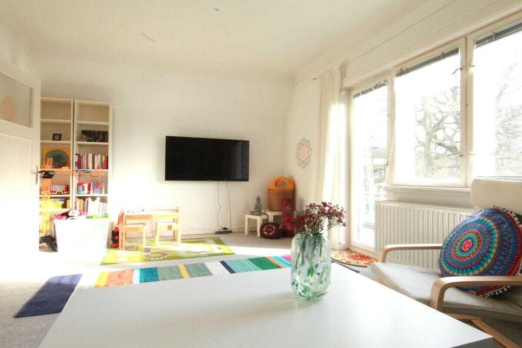 The bright 2.5-room holiday apartment is centrally located, but at the same time quiet, in the green Hamburg-Niendorf. It is on the upper floor of a single-family house.