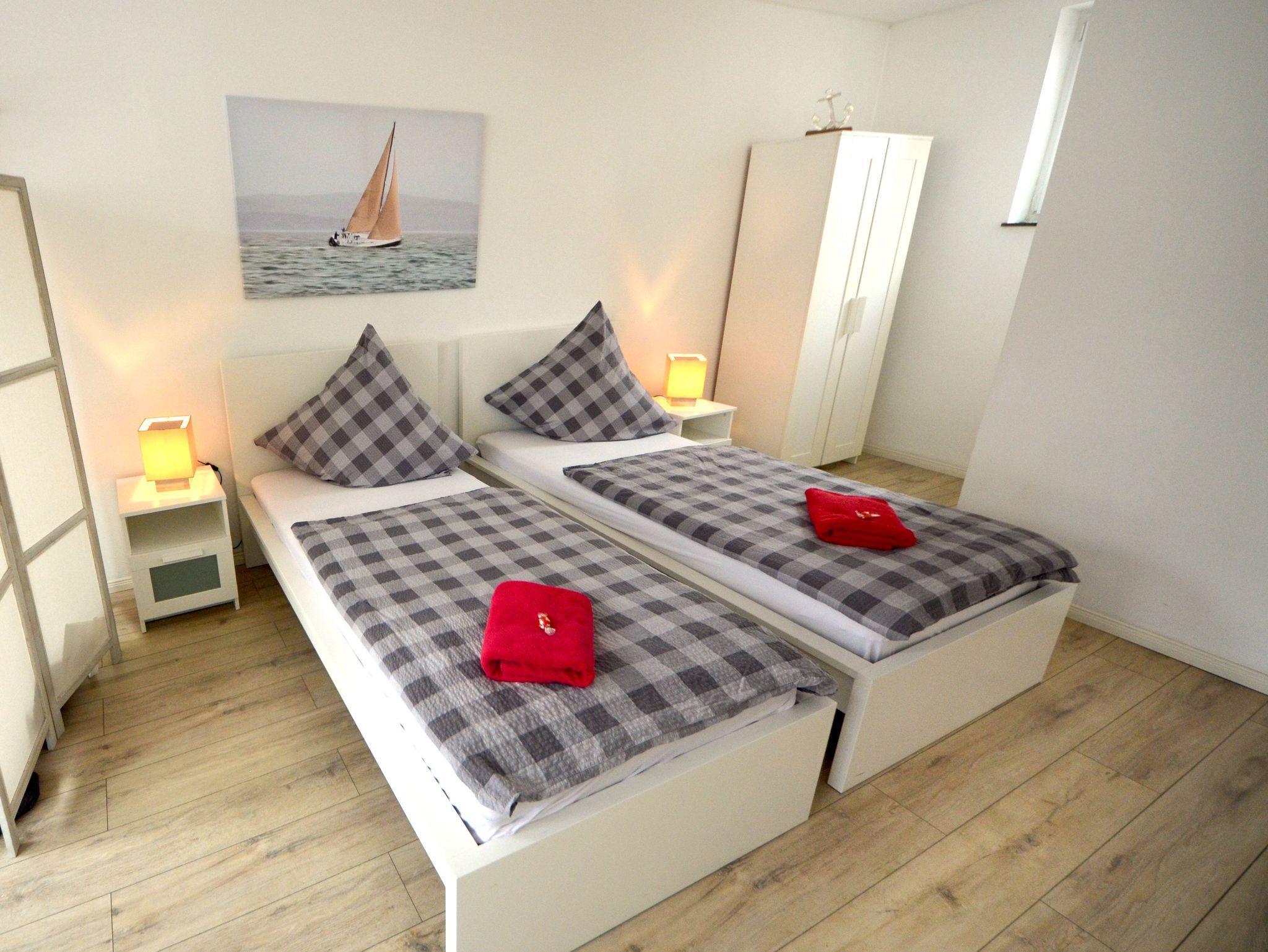 Unser 1-Zimmer-Appartment W2 in Hamburg Horn verfügt über alle Annehmlichkeiten, die einen im Urlaub nichts vermissen lassen. Ein schönes Duschbad aus Granit und eine Einbauküche mit Geschirrspüler fügen sich perfekt ein in die gemütliche Wohnlandschaft, die schlicht Ton in Ton eingerichtet ist. Gemütlich lädt ein Esstisch mit Cocktailsesseln für zwei Personen zum Verweilen ein – alles in nordisch schlichter Eleganz. Die zwei Einzelbetten im Schlafbereich lassen sich zusammenschieben.