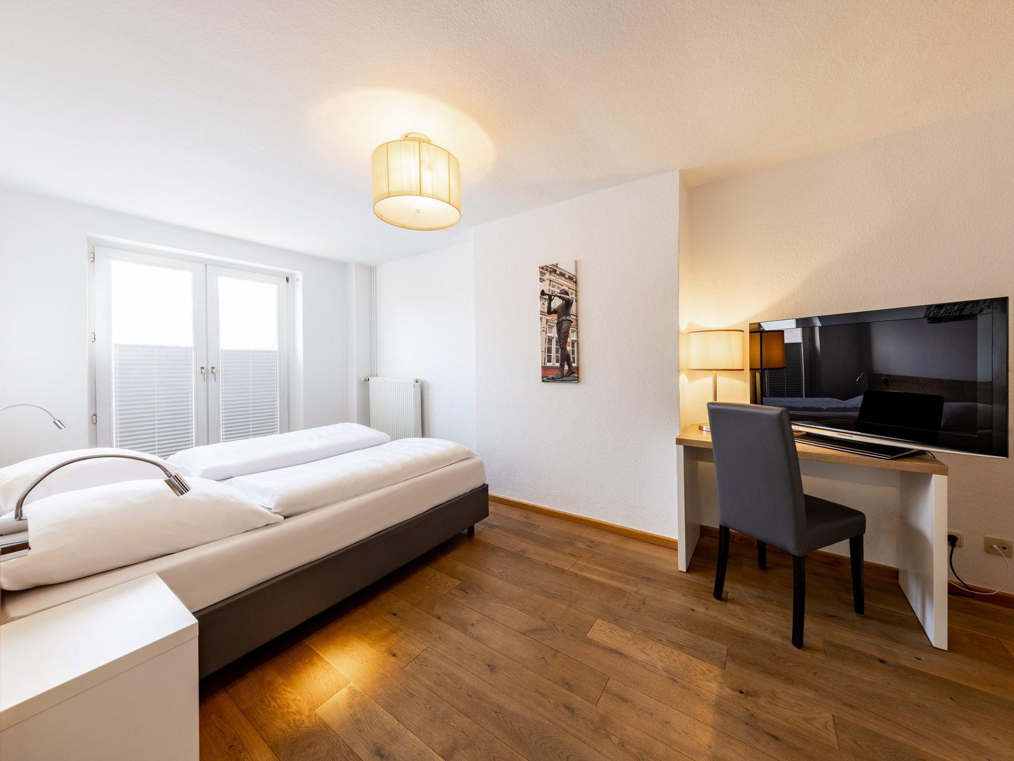 In unserer Dependance direkt nebenan schlafen Sie ruhig und mitten in der Innenstadt mit Blick bis auf den Klüt.