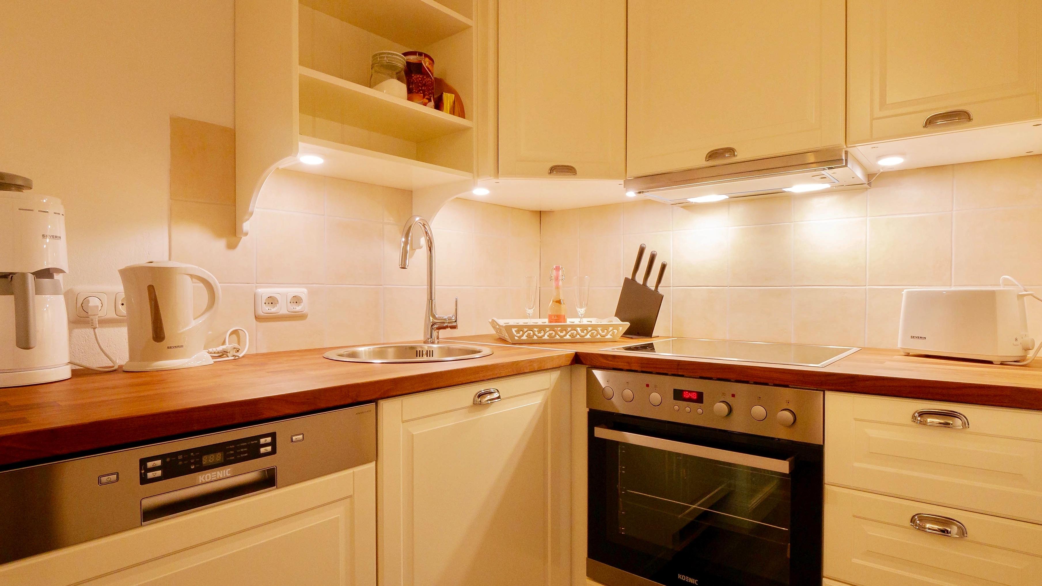 Alle vier Suiten verfügen über eine komplett ausgestattete Einbauküche und kostenlosen WLAN-Zugang.