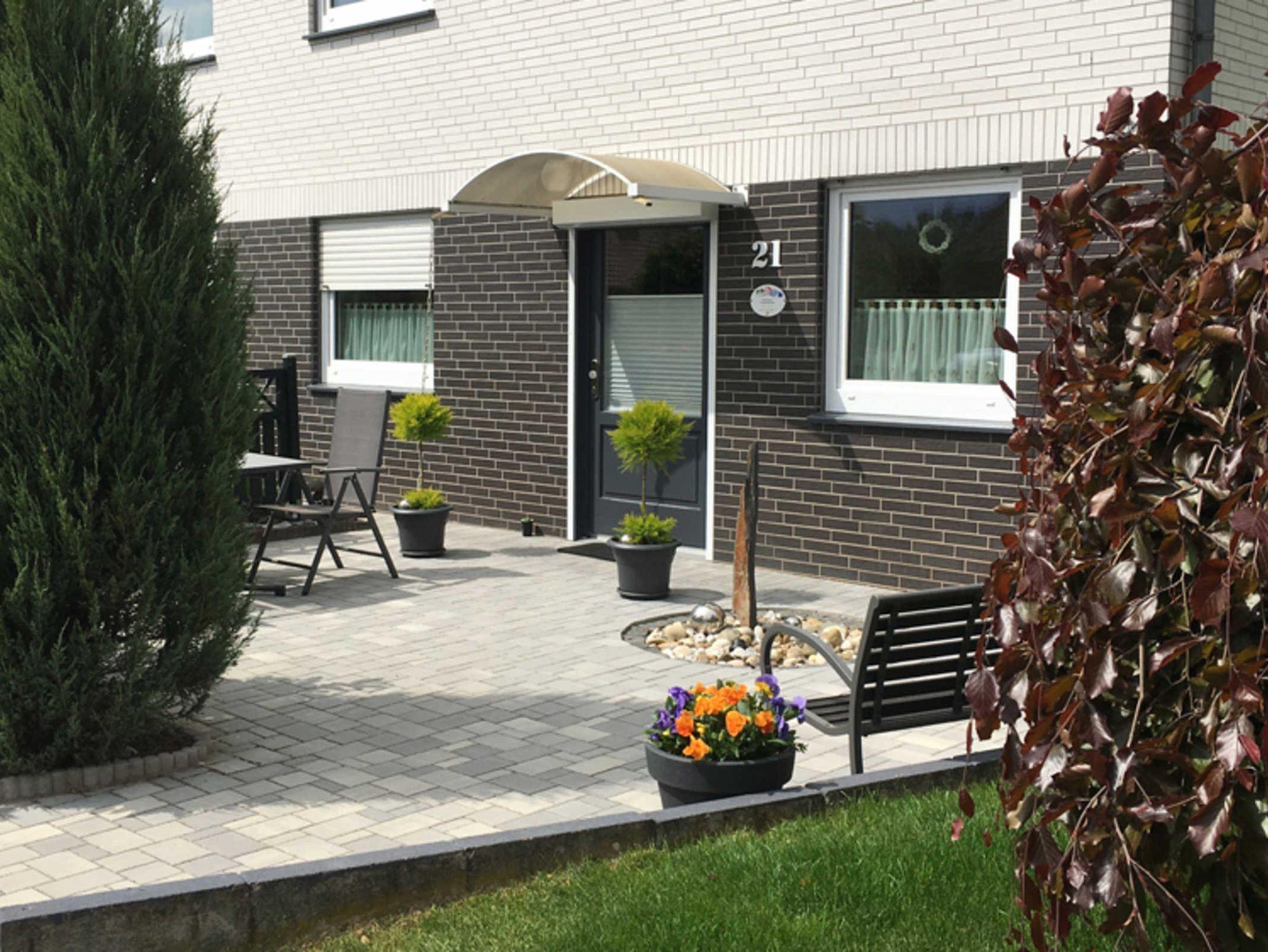 2-Raum Ferienwohnung mit separaten Eingang und Terrasse. Die Wohnung verfügt über Diele, Schlafzimmer, Wohnzimmer, Küche und Bad sowie einen Abstellraum. Parkplatz direkt vorm Haus.