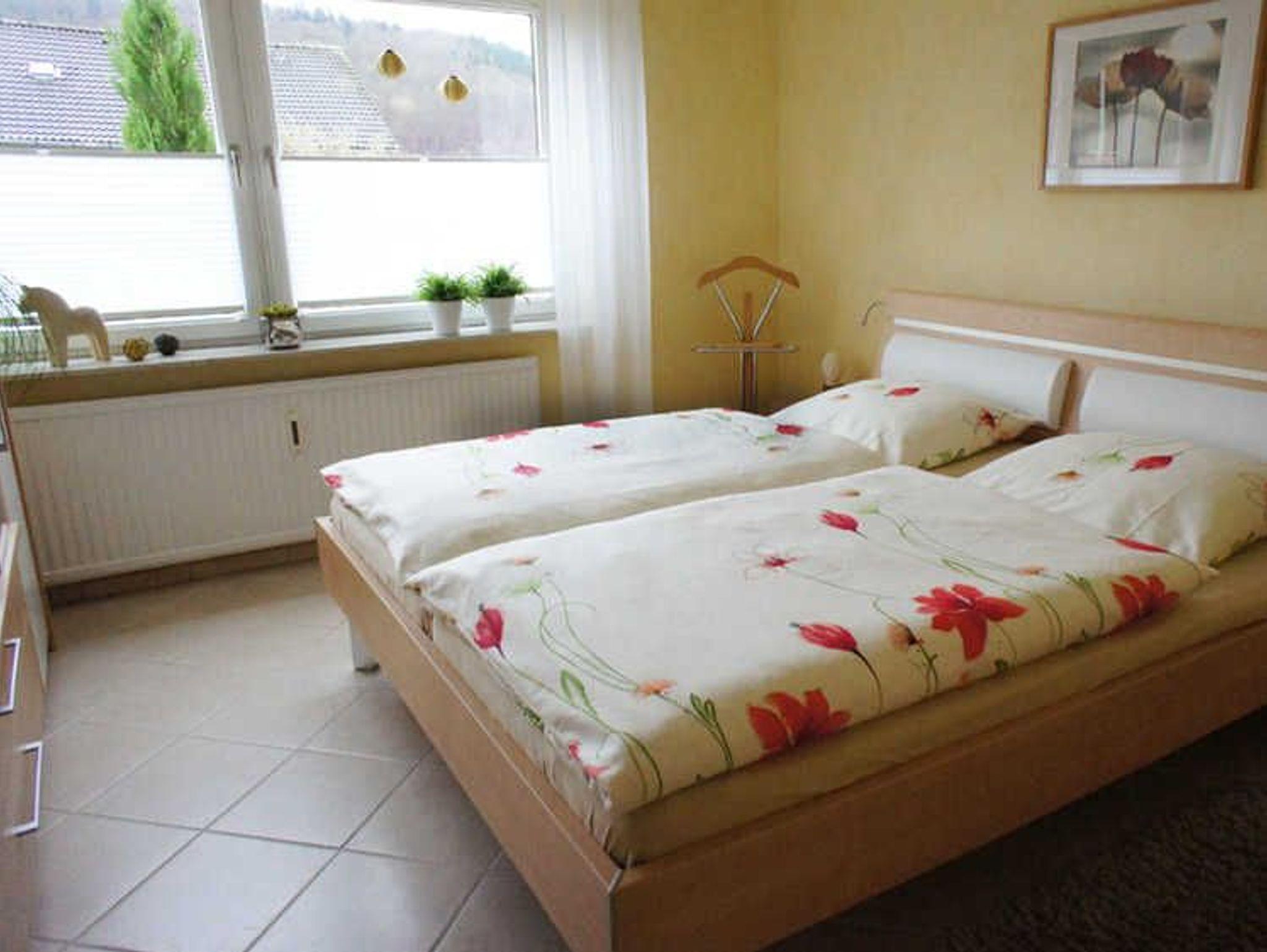 Sie liegt in direkter Waldnähe und ist daher ideal für Wanderausflüge und dennoch stadtnah. Nichtraucherwohnung, sep. Eingang, Sonnenterrasse. W-LAN, Betten Komforthöhe, Betten sind bei Anreise bezogen. Bademäntel vorhanden, PKW Stellplatz. Abschließbare Fahrradgarage. Ab 5 Nächten buchbar.
