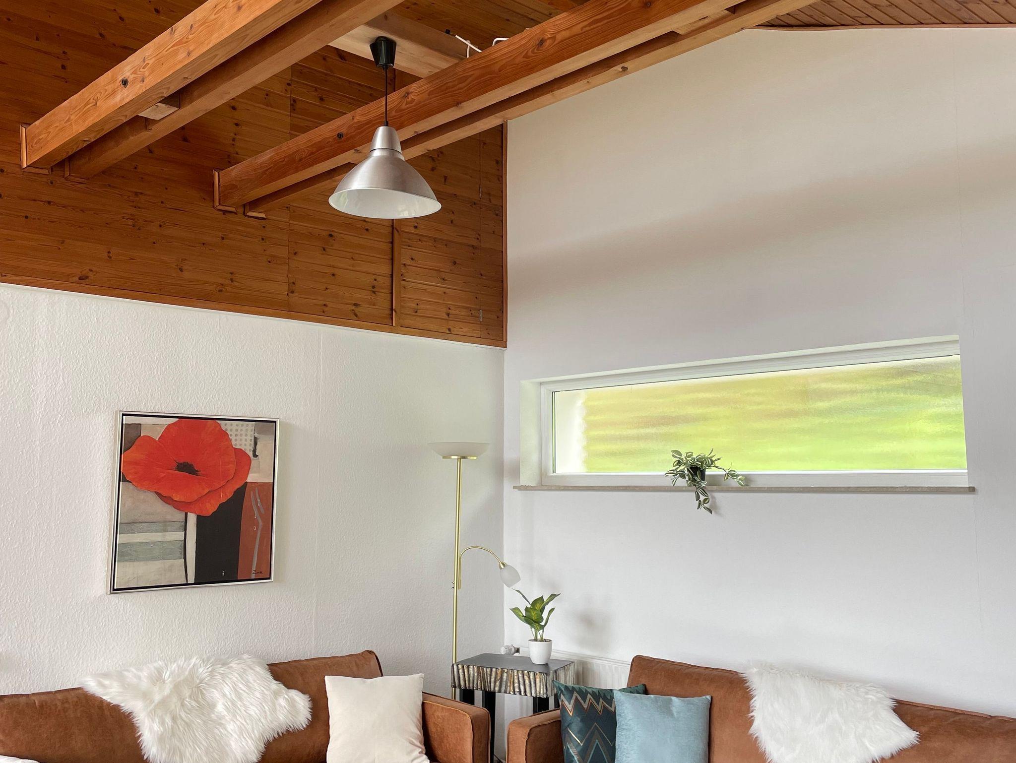 Das Ferienhaus verfügt über 1 großes Wohnzimmer mit offenem Holzgiebel und offenem Durchgang zur voll ausgestatteten Küche (Geschirrspülmaschine, Mikrowelle, Herd mit Backofen, Toaster, Kaffeemaschine, Mixer), 1 Schlafzimmer mit Doppelbett (180x200), 1 Schlafzimmer mit 2 Einzelbetten (je 90x200), alle Betten mit hochwertigen Matratzen , 1 Bad mit Dusche/WC, 1 Raum mit Garderobe, Waschmaschine, Abstellmöglichkeiten.